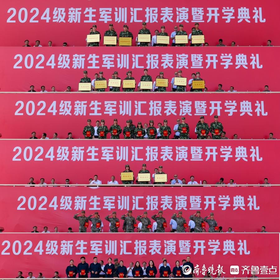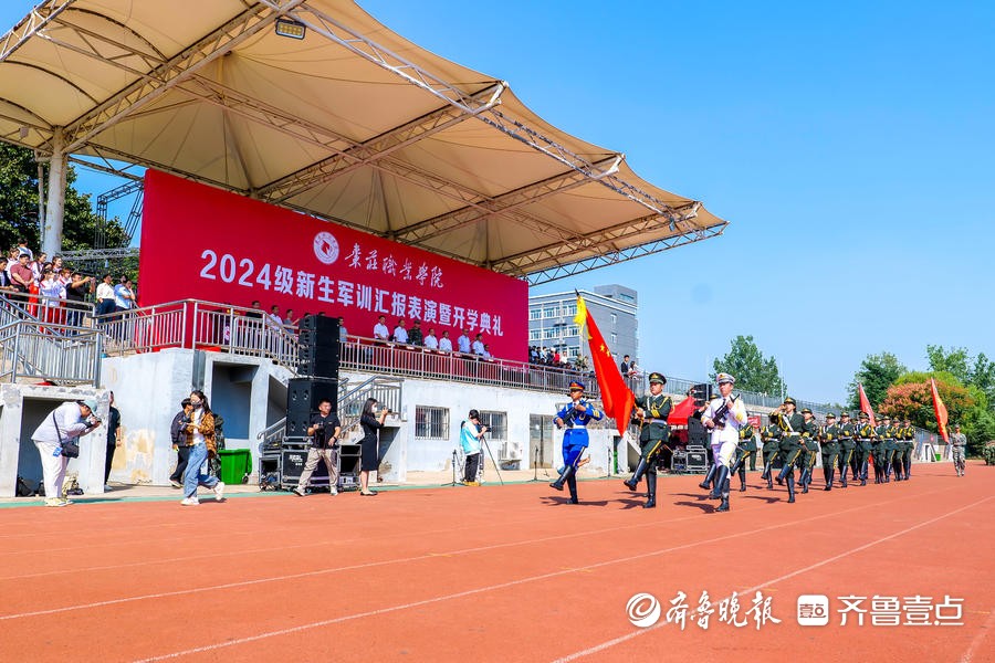 近日,枣庄职业学院举行2024级新生军训汇报暨开学典礼。武警枣庄支队支队长王立强,学院领导郝荣平、梁家和、王念、刘希震、闫 博、郝艺出席典礼,各系(院)、部门主要负责人,以及参训教官、2024级新生和辅导员参加活动。典礼由学院党委副书记、院长梁家和主持。
