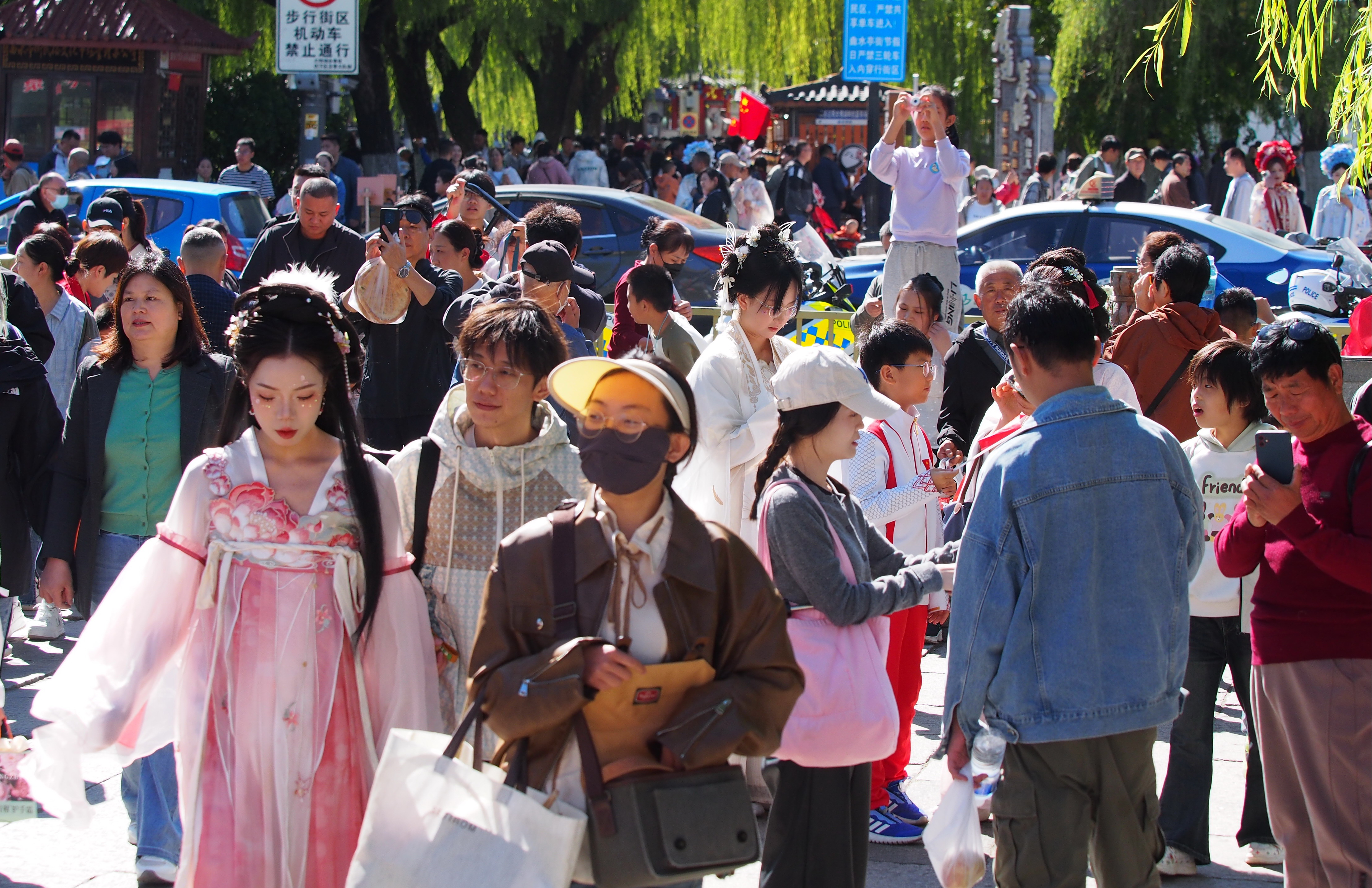 10月2日,国庆假日的济南秋高气爽阳光灿烂,气候非常适合出门旅游。