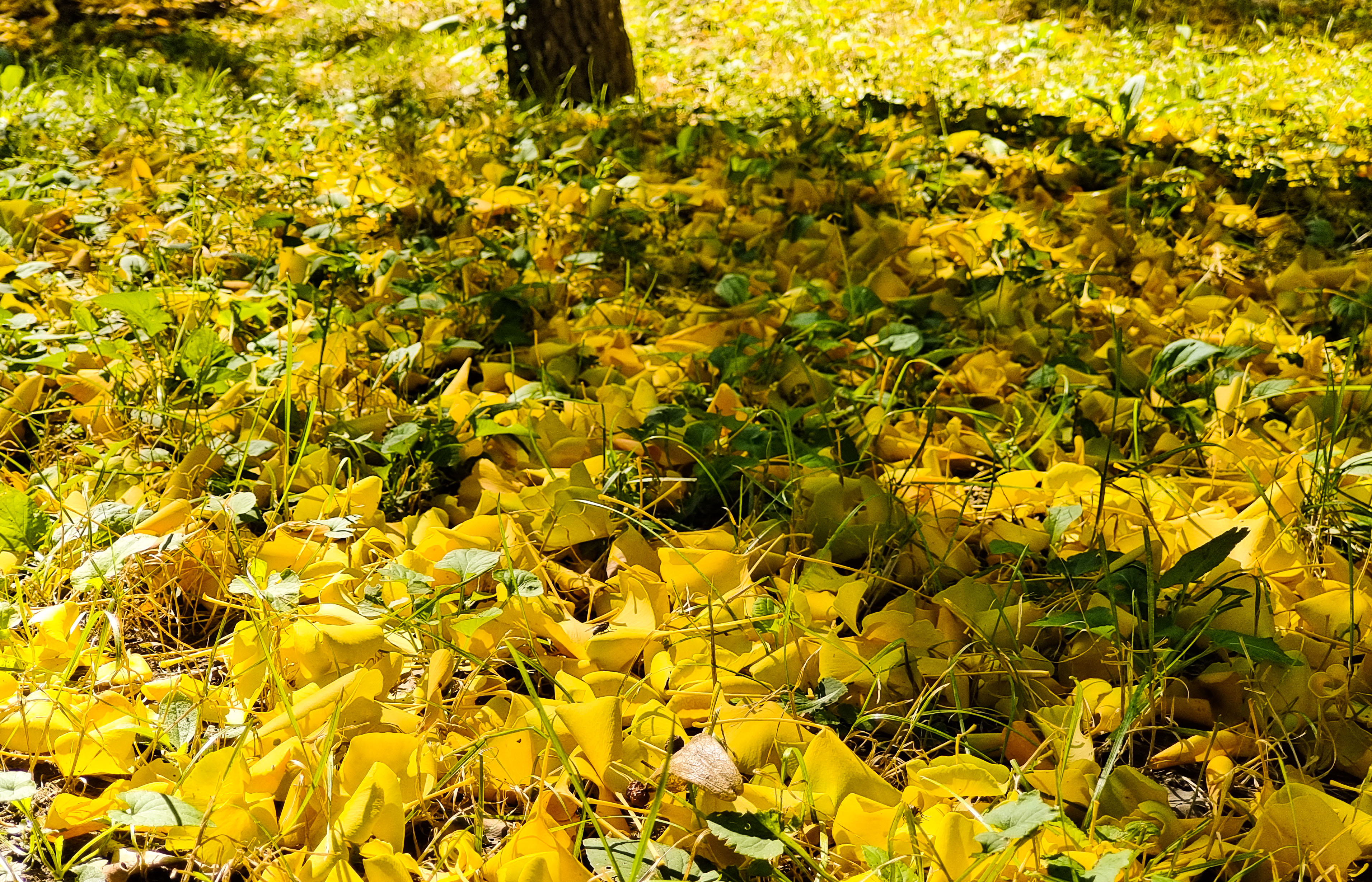 国庆假日秋风送凉,济南东郊大片银杏树叶纷纷变成金色。风过处树叶纷纷飘落 ,在金色秋阳下美如油画。