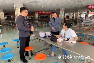 张华伟在学生餐厅亲切慰问积极参加专升本备考学习的留校学生,认真征询对学校假期期间后勤保障服务的意见建议,并对学生提出殷切期望。