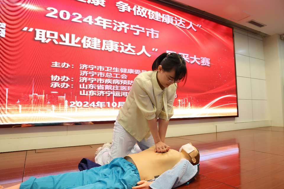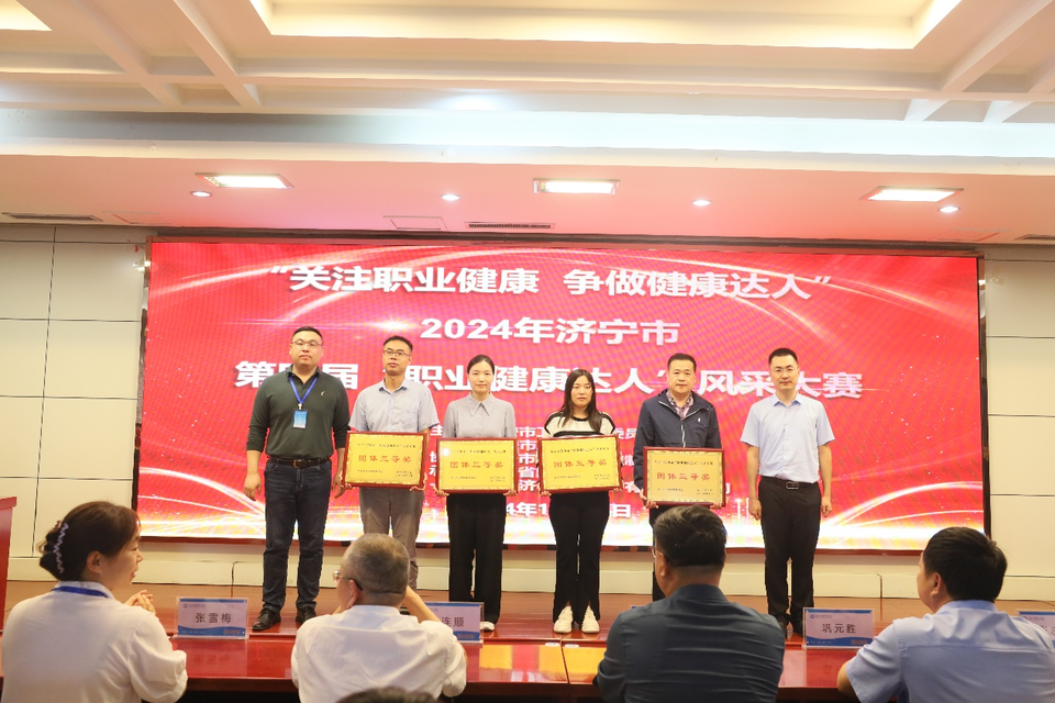 参赛选手们经过个人体能测试、个人职业技能展示、理论考试、团队赛、团队职业场景模拟等五个环节的激烈角逐,最终肖玉芬等18位优秀个人脱颖而出,荣获“职业健康达人”称号;7支队伍进入决赛,经过综合评分,任城区代表队获得团体一等奖,泗水县代表队和邹城市代表队获得团体二等奖,兖州区代表队、高新区代表队、微山县代表队和金乡县代表队获得团体三等奖。