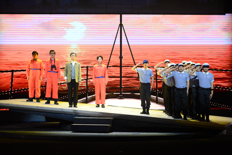 启动仪式后,首场演出剧目《大国之蓝》精彩上演。该剧以“全国高校黄大年式教师团队”“西北工业大学自主水下航行器团队”事迹为素材,以科技工作者群像为主体,讲述科研育人、矢志报国的故事,展现科技工作者们爱国、创新、求实、奉献、协同、育人的精神风貌。话剧选择了“为周文渊院士写传记”的叙事线索,以年轻女记者安妮的视角,将采访周文渊院士作为主线串联起水下航行器研制的不同阶段,每一阶段的难关,每一难关的跨越都使安妮更深切地理解这一群心怀“国之大者”的科研工作者,用他们的故事,激励青年学子自信自强、守正创新、踔厉奋发、勇毅前行。