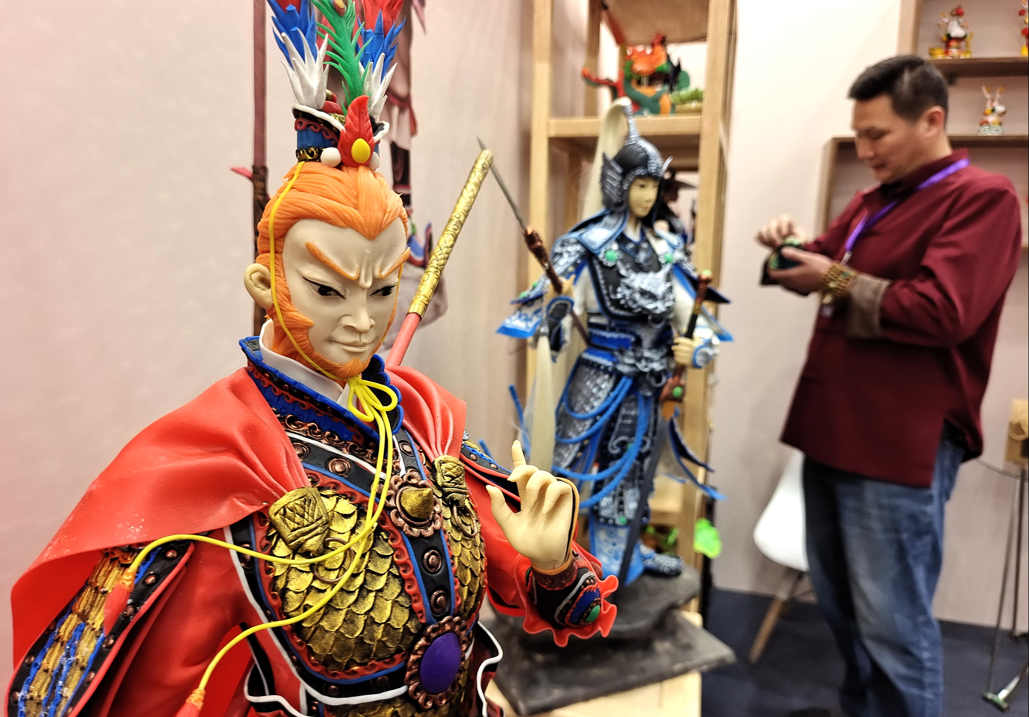 济南舜耕国际会展中心,第八届中国非遗博览会火热进行。济南非遗作品设展区非常精彩,各种风格的面塑是一大特色。