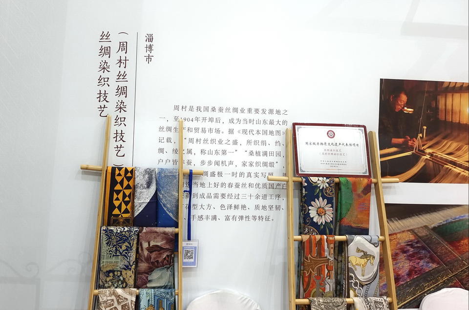第八届中国非遗博览会在济南继续火热进行。来自山东周村的国家级非遗《周村丝绸染织技艺》展出了众多精美丝绸,展示了当年火爆一时的“丝绸之乡”的底蕴。