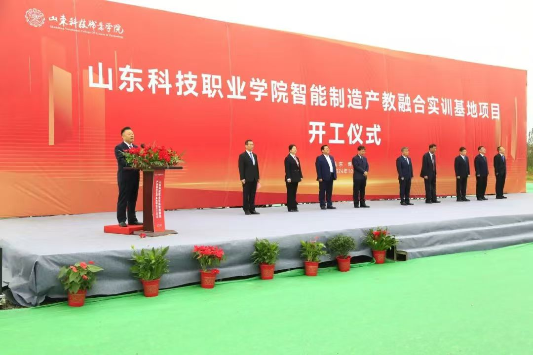 10月19日,山东科技职业学院联合潍坊昌大建设集团有限公司等单位举行智能制造产教融合实训基地建设项目开工仪式。