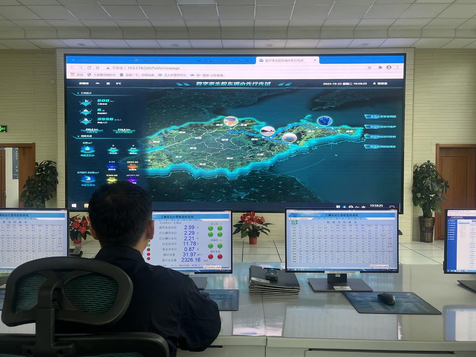 顺着工程继续走,就来到了昌邑市城西的王耨泵站。据昌邑管理站主任田鸿芝介绍,昌邑明渠试点段长度30公里,连接黄水东调、战略水源地等省级水网工程,涉及水源切换、精准分水、应急行洪泄水等多种复杂输水工况,为全线调度中枢,是保障向青岛、烟台、威海方向供水的关键所在。