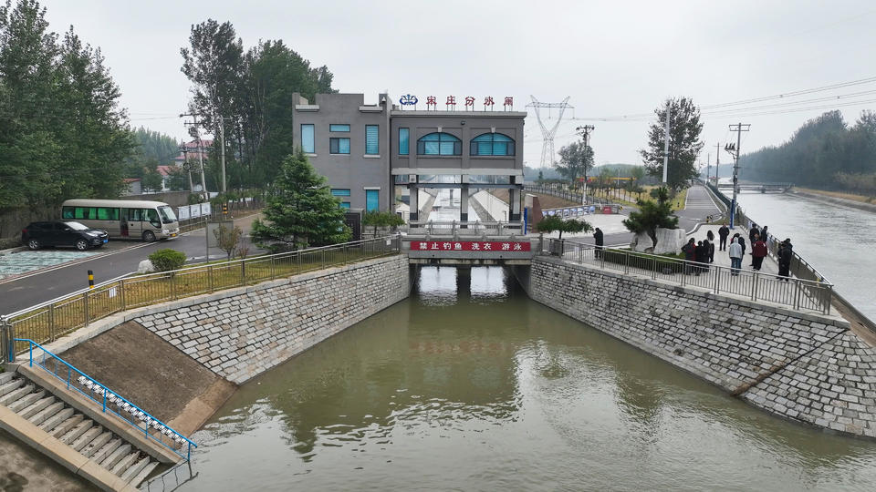 紧接着,记者一行来到了下游一个重要的节点工程——宋庄分水闸枢纽。据省调水中心潍坊分中心原党委书记、主任于德光介绍,宋庄分水闸枢纽是山东引黄济青、胶东调水、黄水东调三项重大引调水工程的唯一交汇“结”点,也是山东省现代水网“一轴三环”中胶东半岛片和淮河流域片的交汇点。“南水北调、引黄济青、黄水东调工程调引的黄河水和长江水在这里相汇后,又分成南北两线,承担着向青岛,烟台和威海调水的任务。”