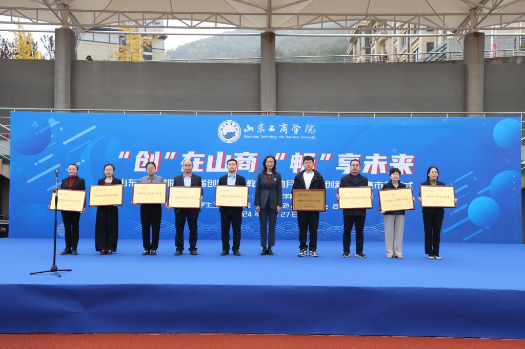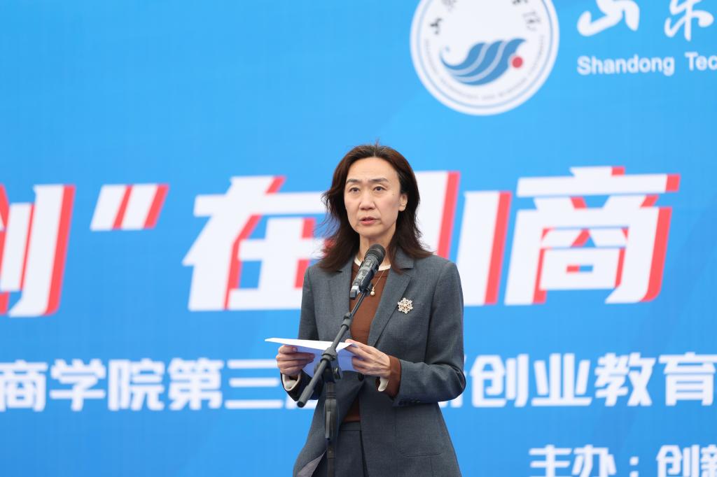 10月27日,山东工商学院于西校区田径场举行“创在山商,畅享未来”第三届创新创业教育活动月暨首届创新创业集市开幕式。党委委员、副院长贾海宁出席并讲话。
