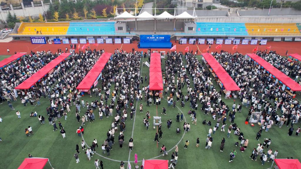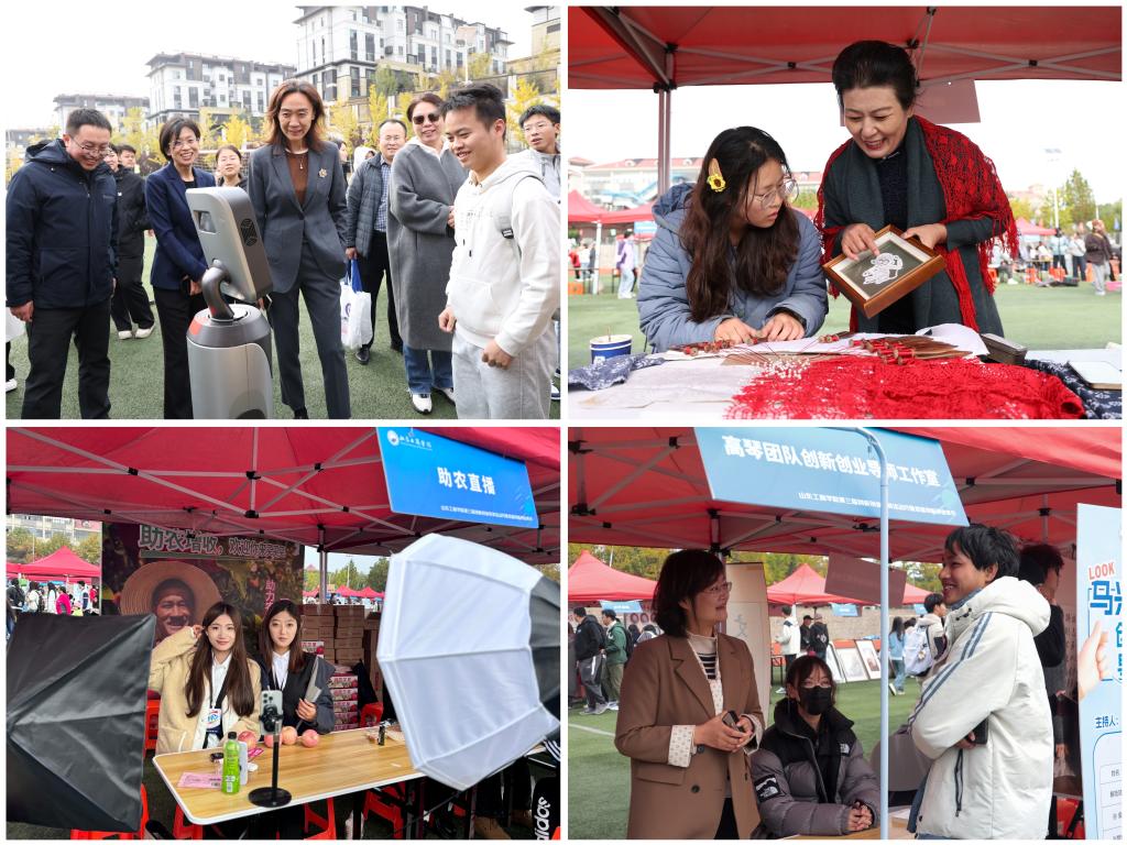 仪式后,各二级学院组织学生参与创新创业集市活动,本次集市设置创业成果展示区、竞赛成果展示区、非遗文化展示区、创业校友展示区、助农直播电商区、创业政策解读区、趣味活动体验区。