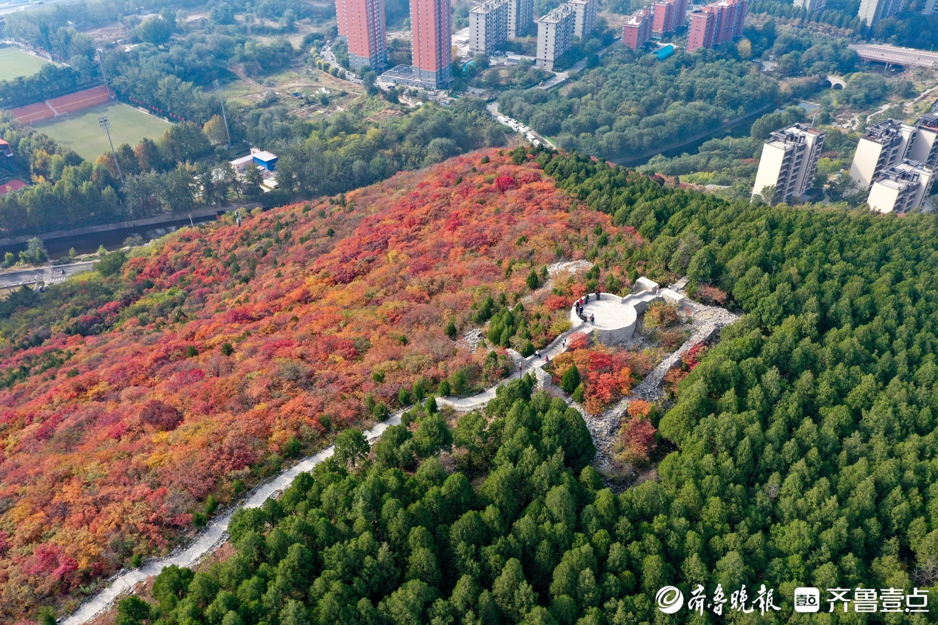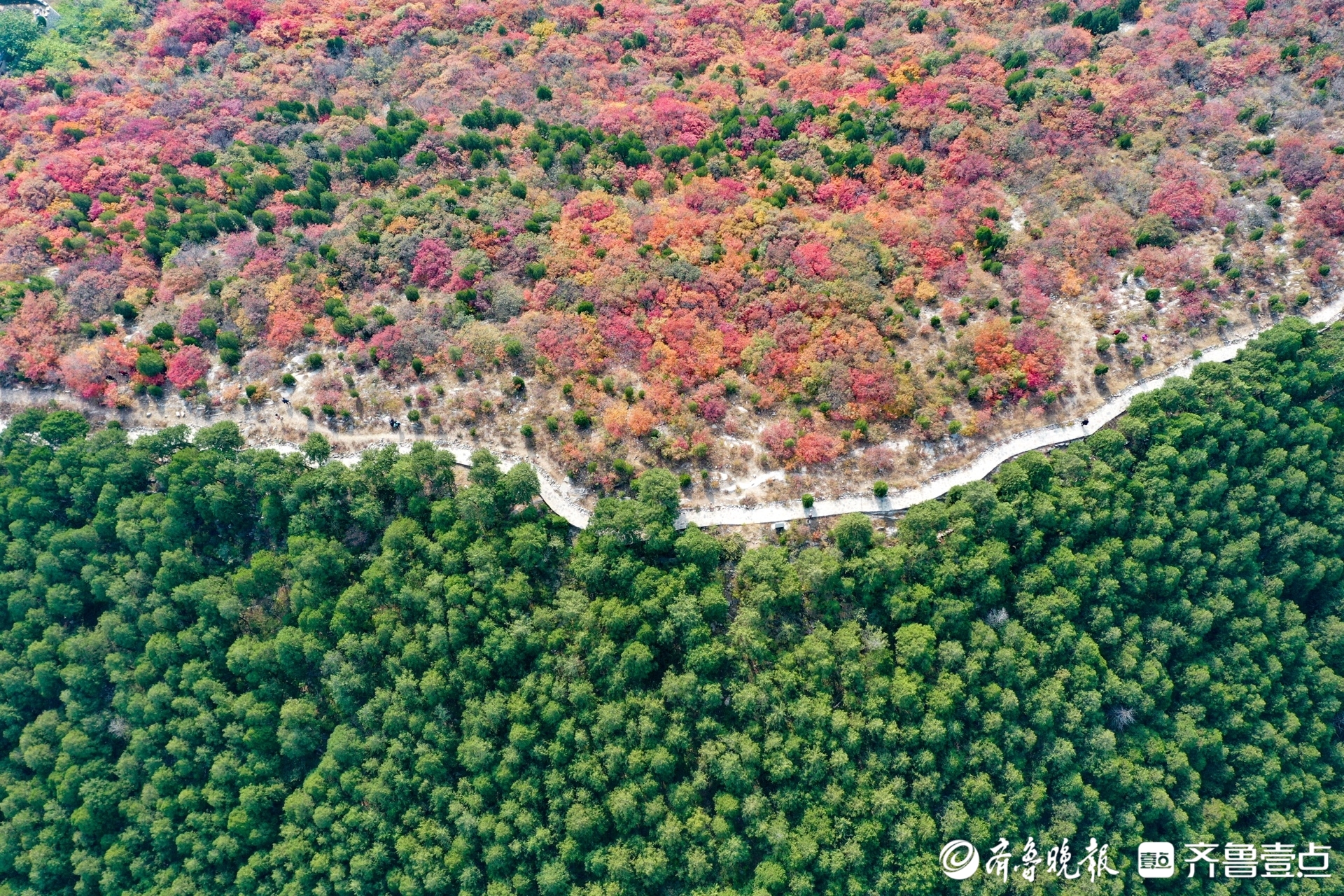 10月29日,位于济南市的蝎子山层林尽染,犹如一幅色彩斑斓的画卷。 入秋后,蝎子山凭借“半边翠绿半边红”的奇特景观迅速“走红”,吸引众多市民登山打卡。 蝎子山以山脊为分界线,形成了“一山双色”景观,山体南侧是大片的黄栌树,山体北侧是松树林,每到深秋时节,便会出现半边青翠半边红的景象。 (大众新闻·齐鲁壹点 徐晓磊)