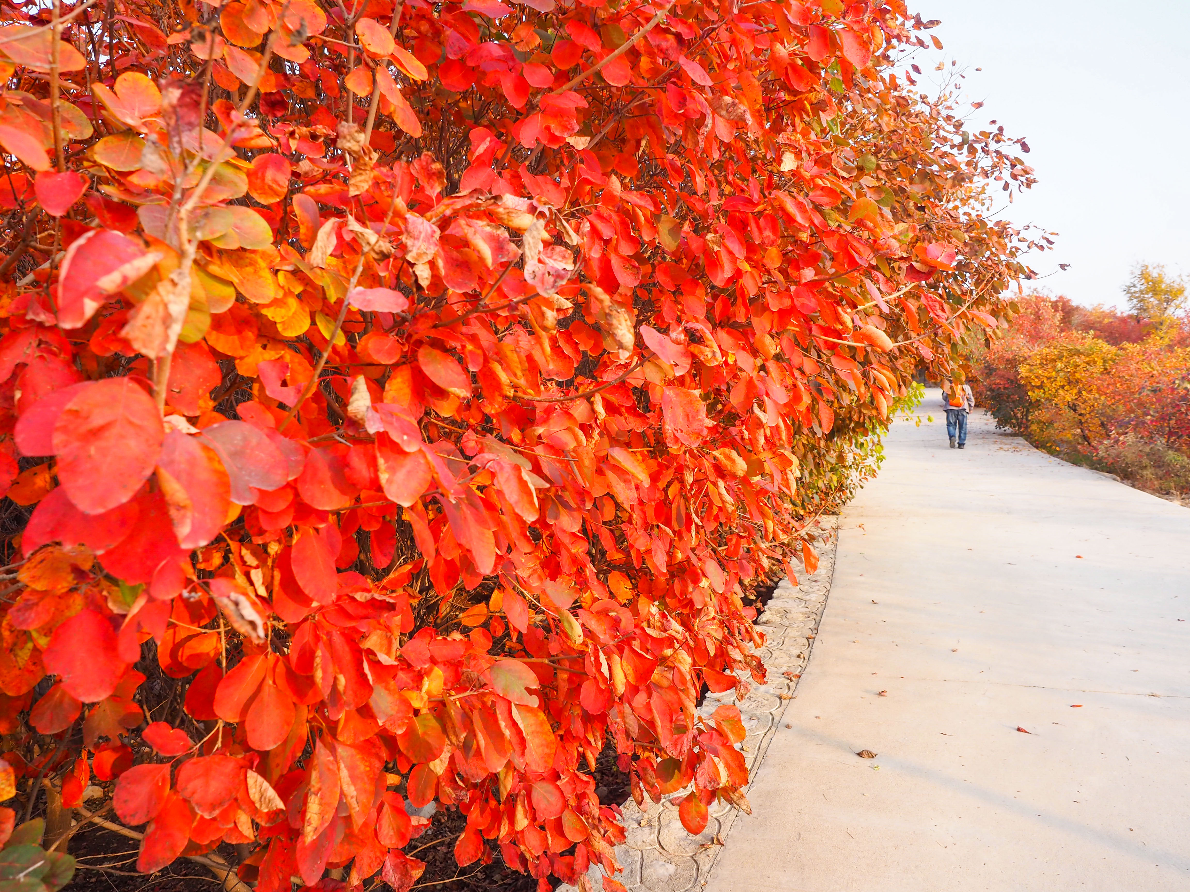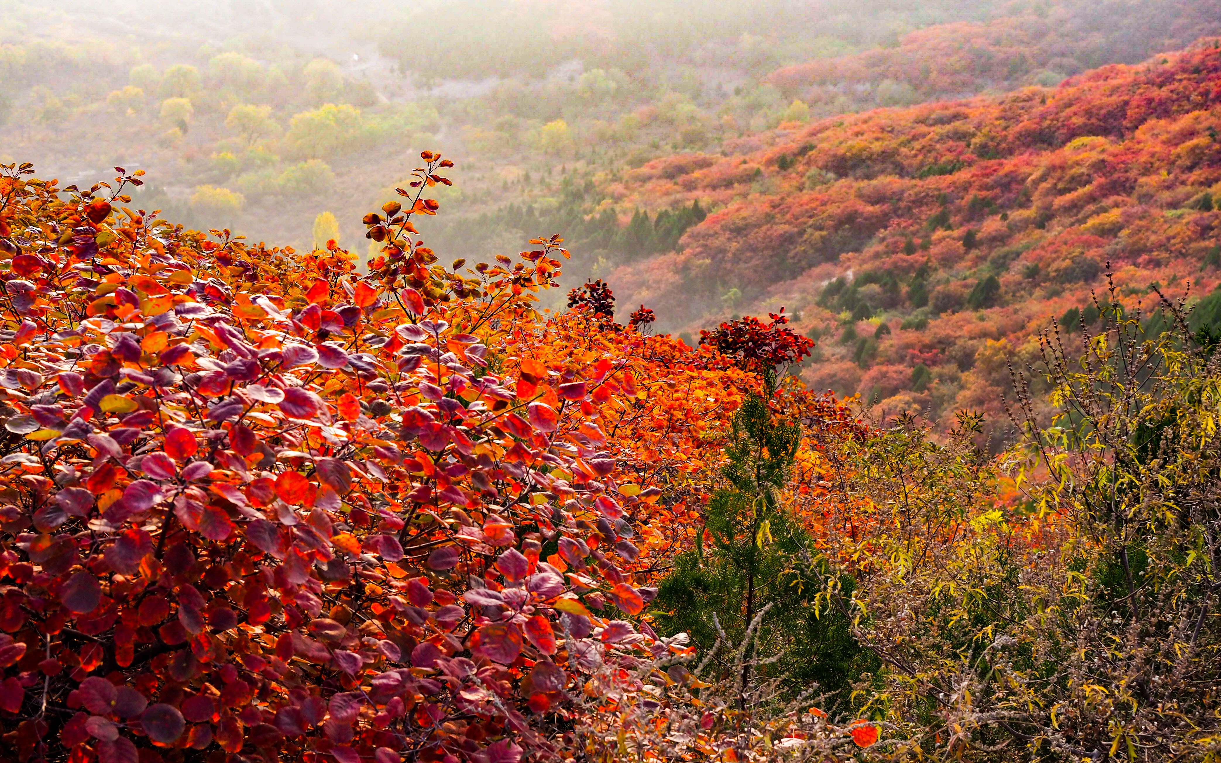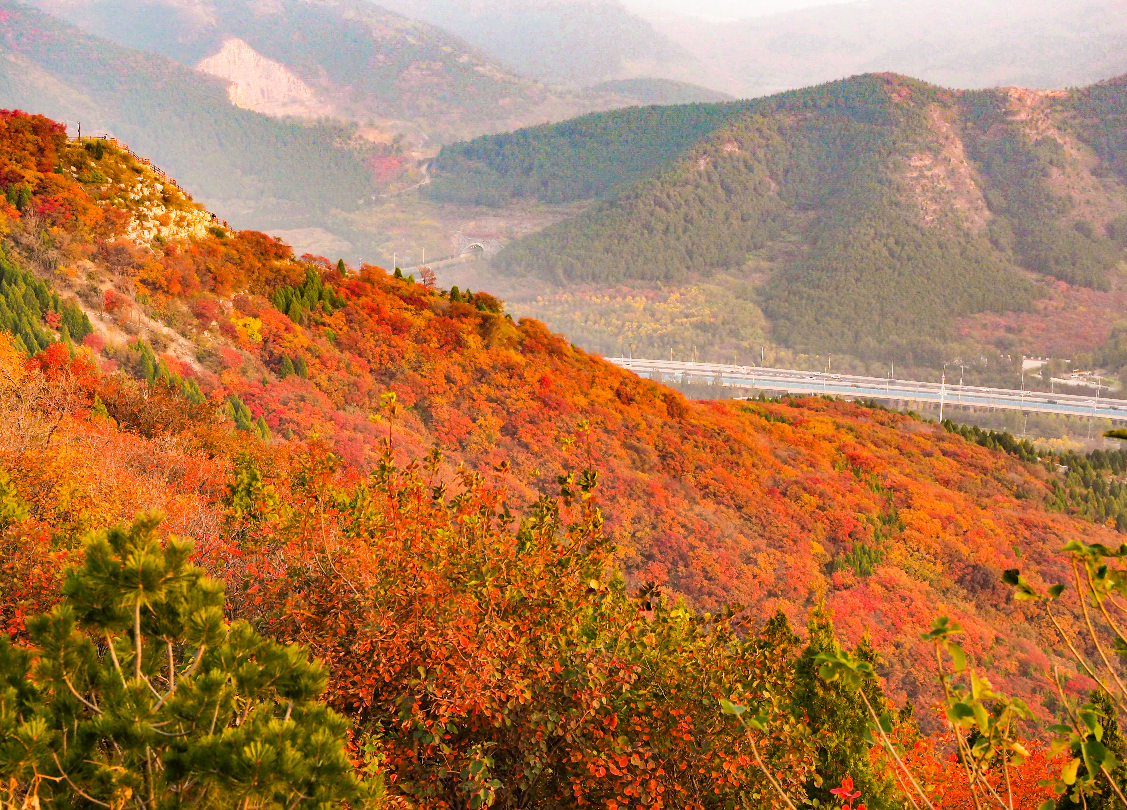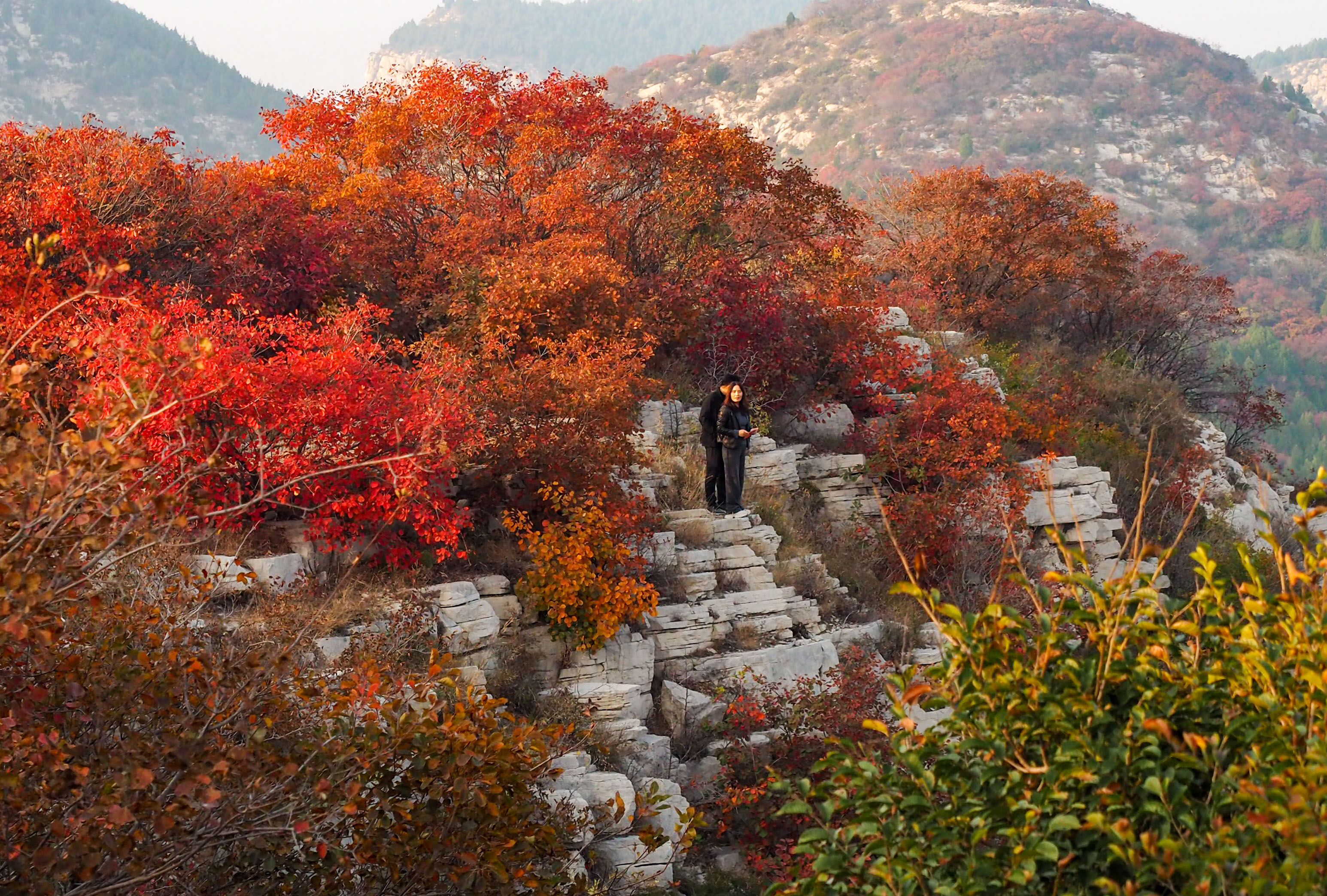 10月29日,济南秋阳灿烂。南外环附近的蚰蜒山东南侧山体红彤彤一片。 大面积黄栌已经红透,景色非常火热喜庆。大批市民结伴前来欣赏秋色,沉浸在红色的深秋中不舍离去。 (大众新闻·齐鲁壹点客户端记者 周青先)