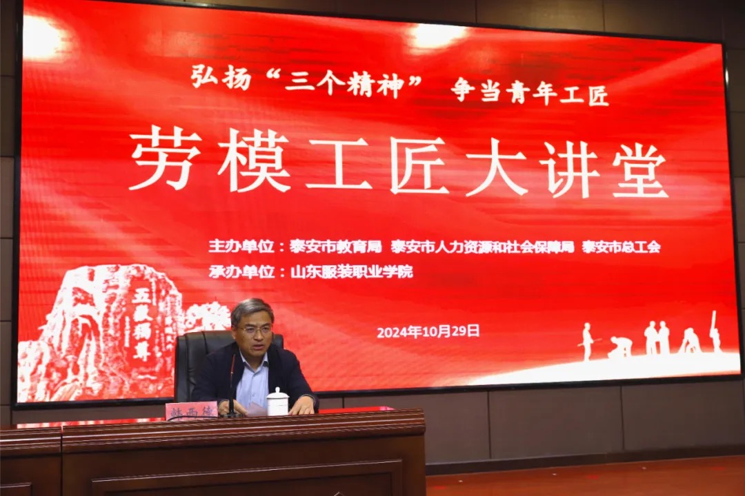 为大力弘扬劳模精神、劳动精神、工匠精神,根据有关要求,10月29日下午,山东服装职业学院开展了“弘扬‘三个精神’争当青年工匠”劳模工匠大讲堂活动。山东省首席技师、五一劳动奖章获得者山东岱银纺织集团徐志勇,鲁泰集团启明服饰三厂厂长、先进标兵朱文山到学院宣讲。学院党委书记郝燕与两位劳模工匠进行交流座谈。宣讲活动由学院党委副书记韩西德主持。
