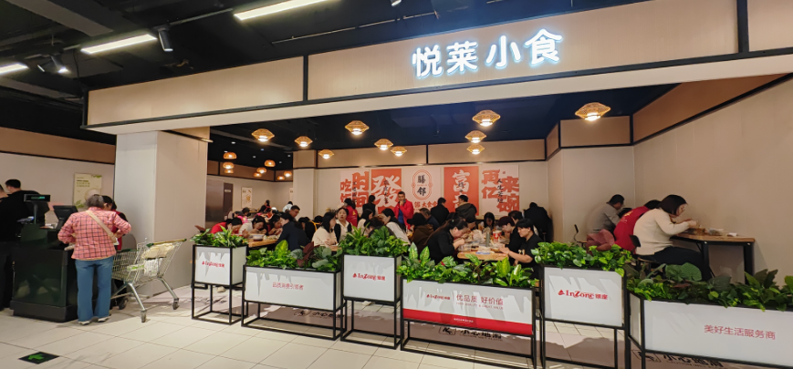 七里山店这次调改,在服务上也呈现出诸多亮点,比如新增顾客综合服务区、扩大鲜食加工区和膳邻大食堂,为顾客提供了更加舒适、通透的购物环境。