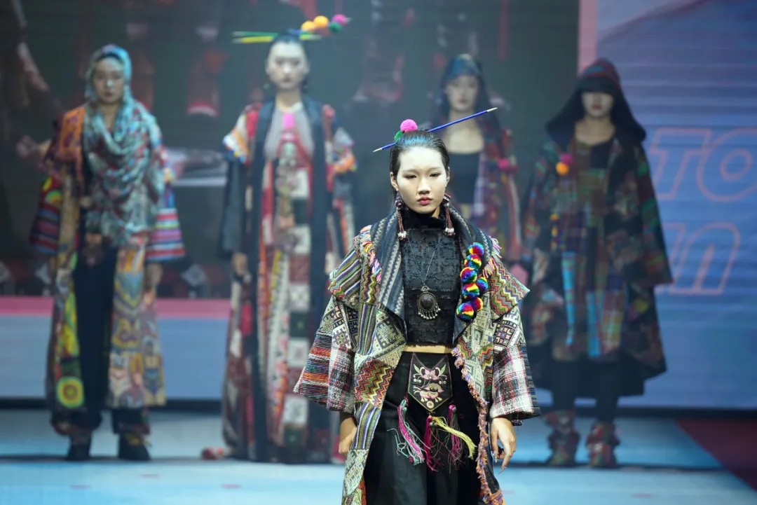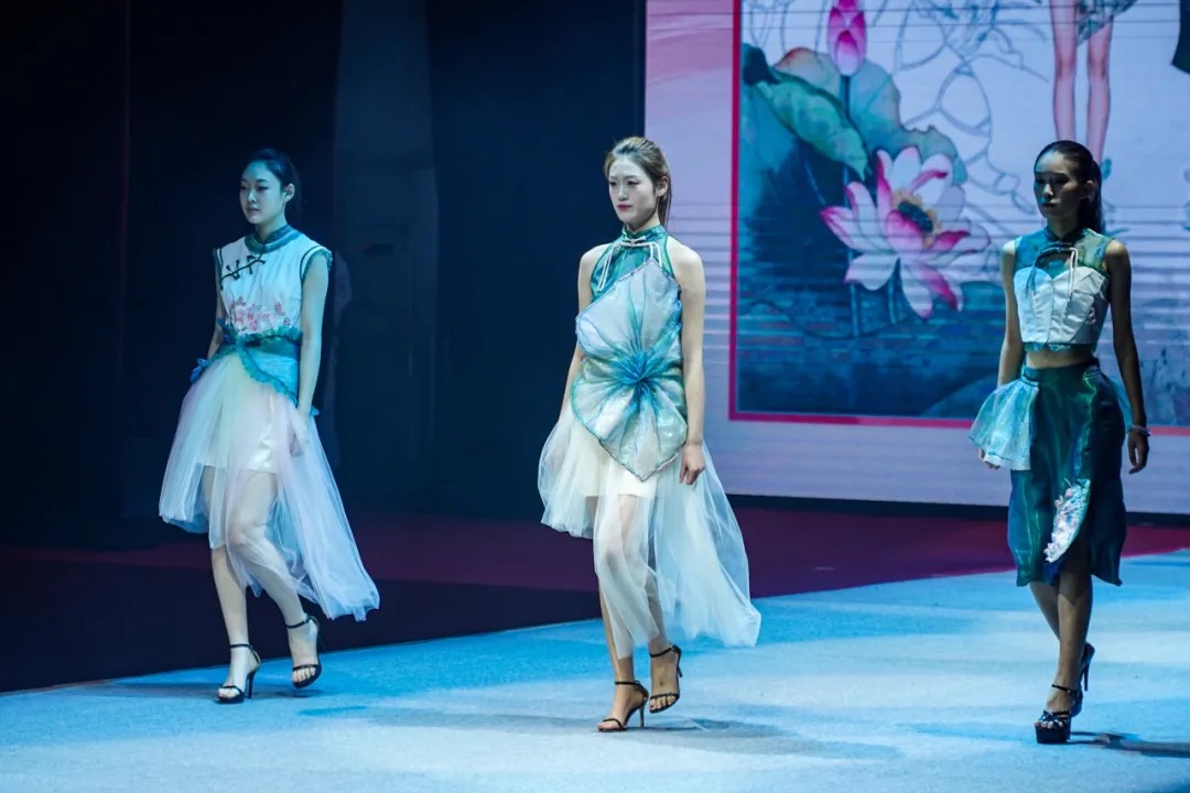 本次活动是一场视觉与文化的盛宴。参赛者围绕“鲁锦・可持续时尚”主题精心设计,呈现出了一系列作品。设计师们独具匠心,通过巧妙的拼接、印染等手法,将鲁锦与现代环保面料相结合。时尚表演与传播专业学生身穿这些既有传统文化特色又符合现代审美和穿着需求的服装在颁奖典礼进行现场展示。