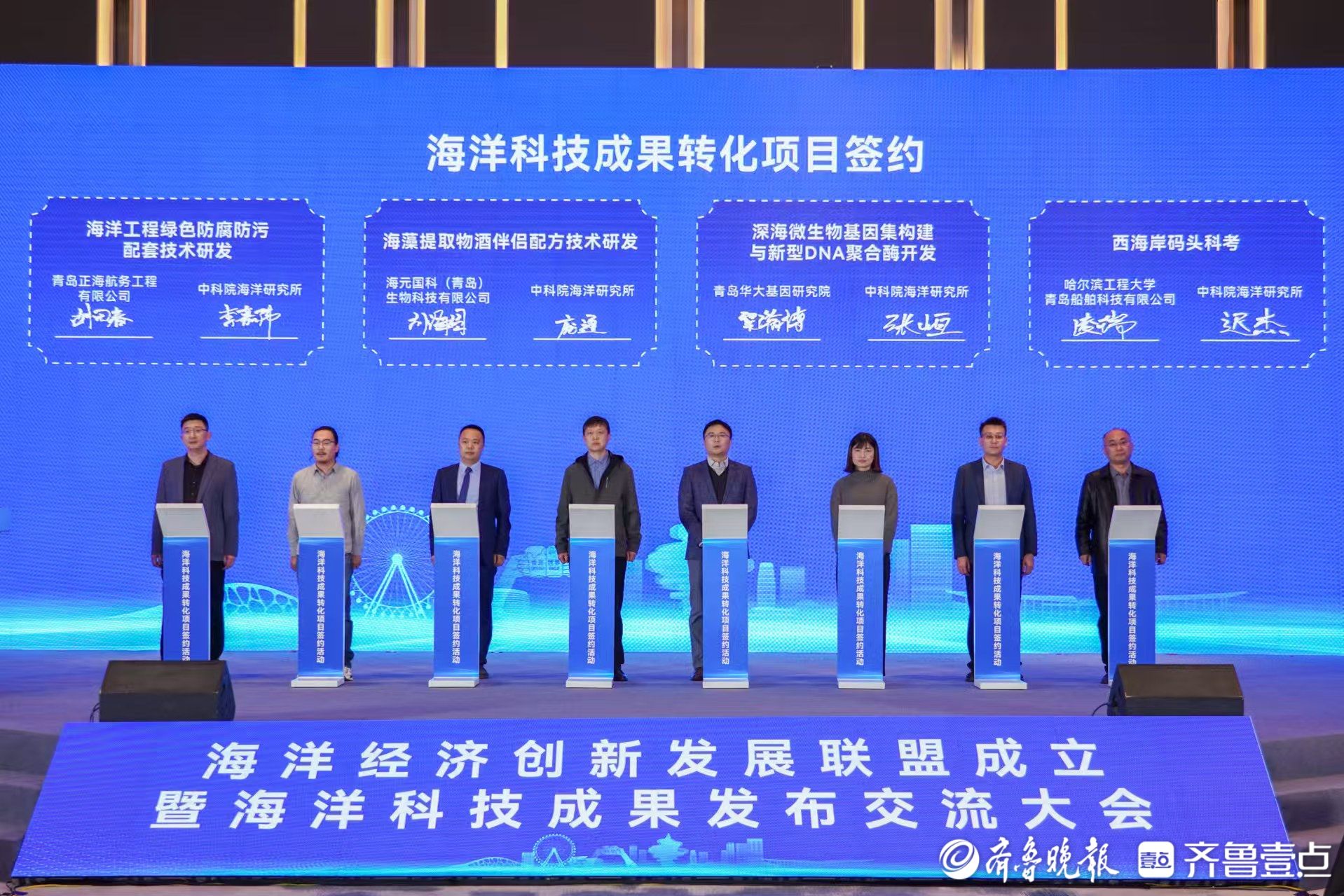 12月7日,海洋经济创新发展联盟成立暨海洋科技成果发布交流大会在青岛西海岸新区举行,会上海洋经济创新发展联盟揭牌成立。据悉,现场发布了37项海洋科技成果,以及58项海洋领域技术需求。9项海洋科技成果转化项目也在现场同步签署。