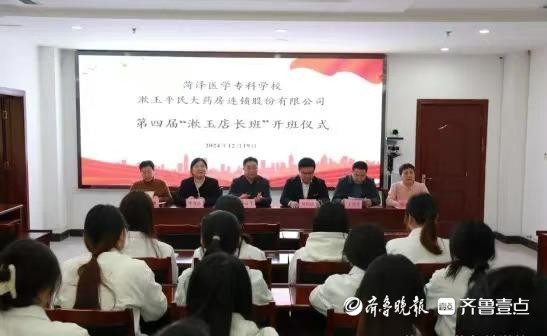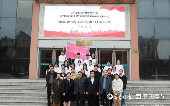 为进一步加深校企合作,提高人才培养质量,12月19日,菏泽医学专科学校举办第四届“漱玉店长班”开班仪式。漱玉商学院院长刘相晨,招聘经理李道治,校党委委员、副校长齐云飞,校企合作与培训就业处处长王学贺,药学与检验系党总支书记田文革,药学与检验系副主任张秀华以及17名漱玉平民店长班成员共同参与。