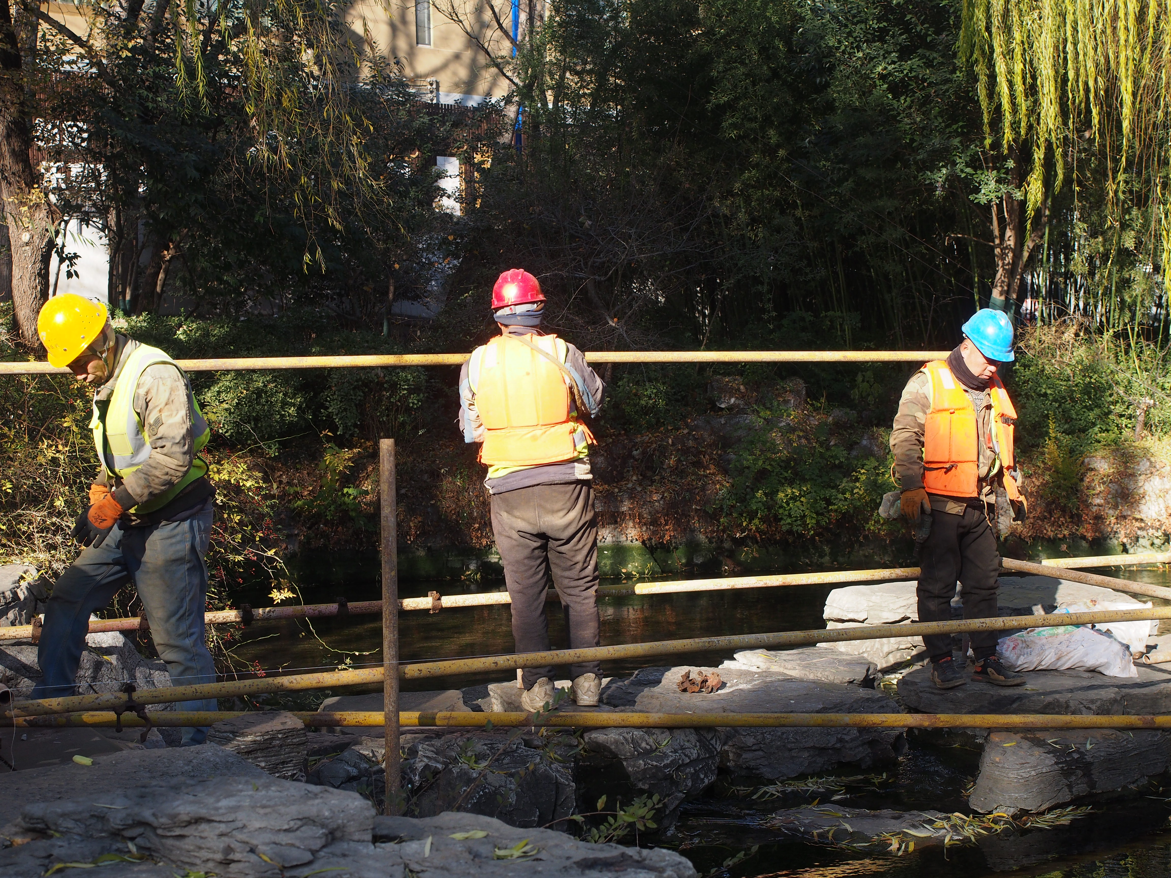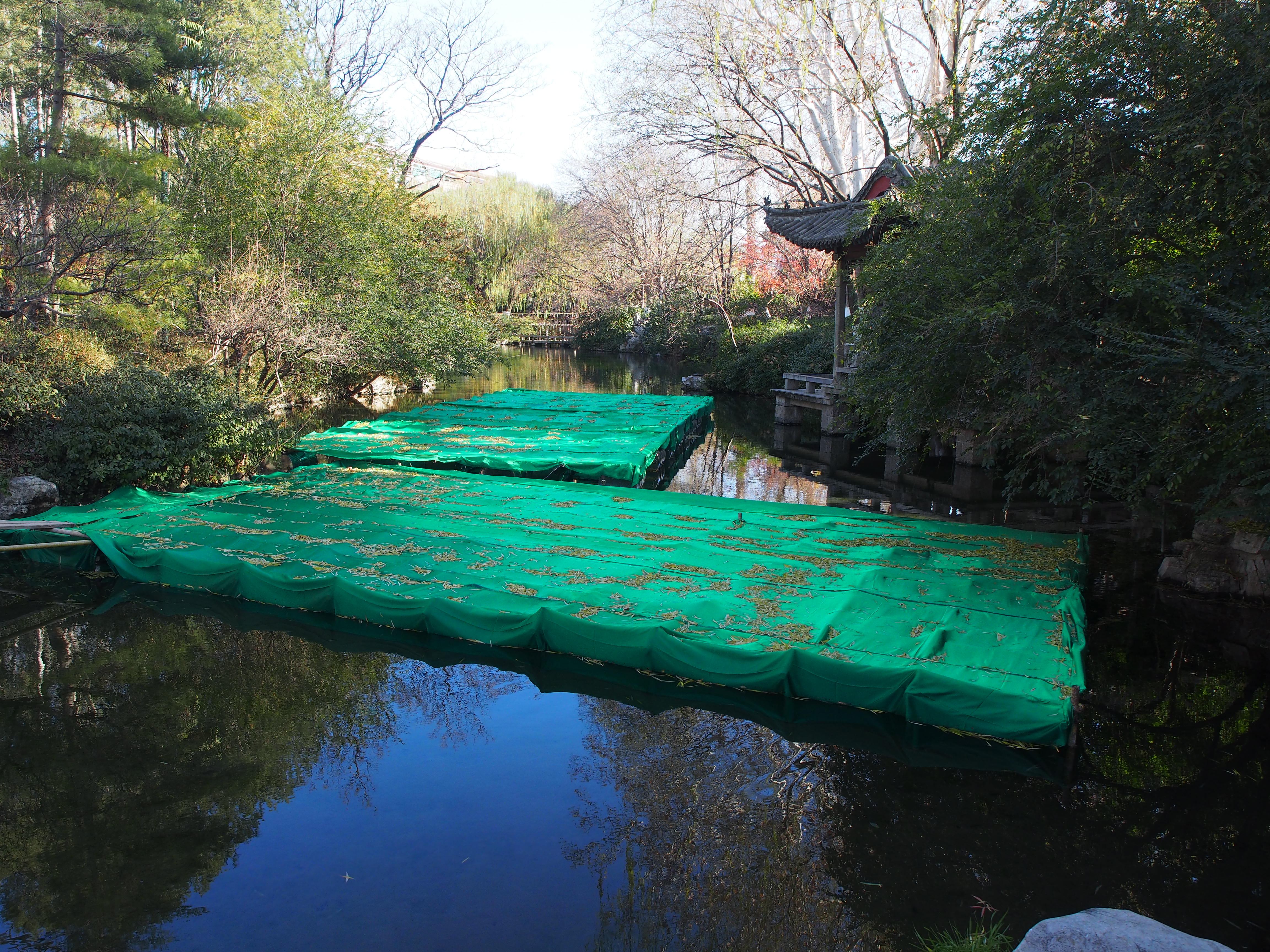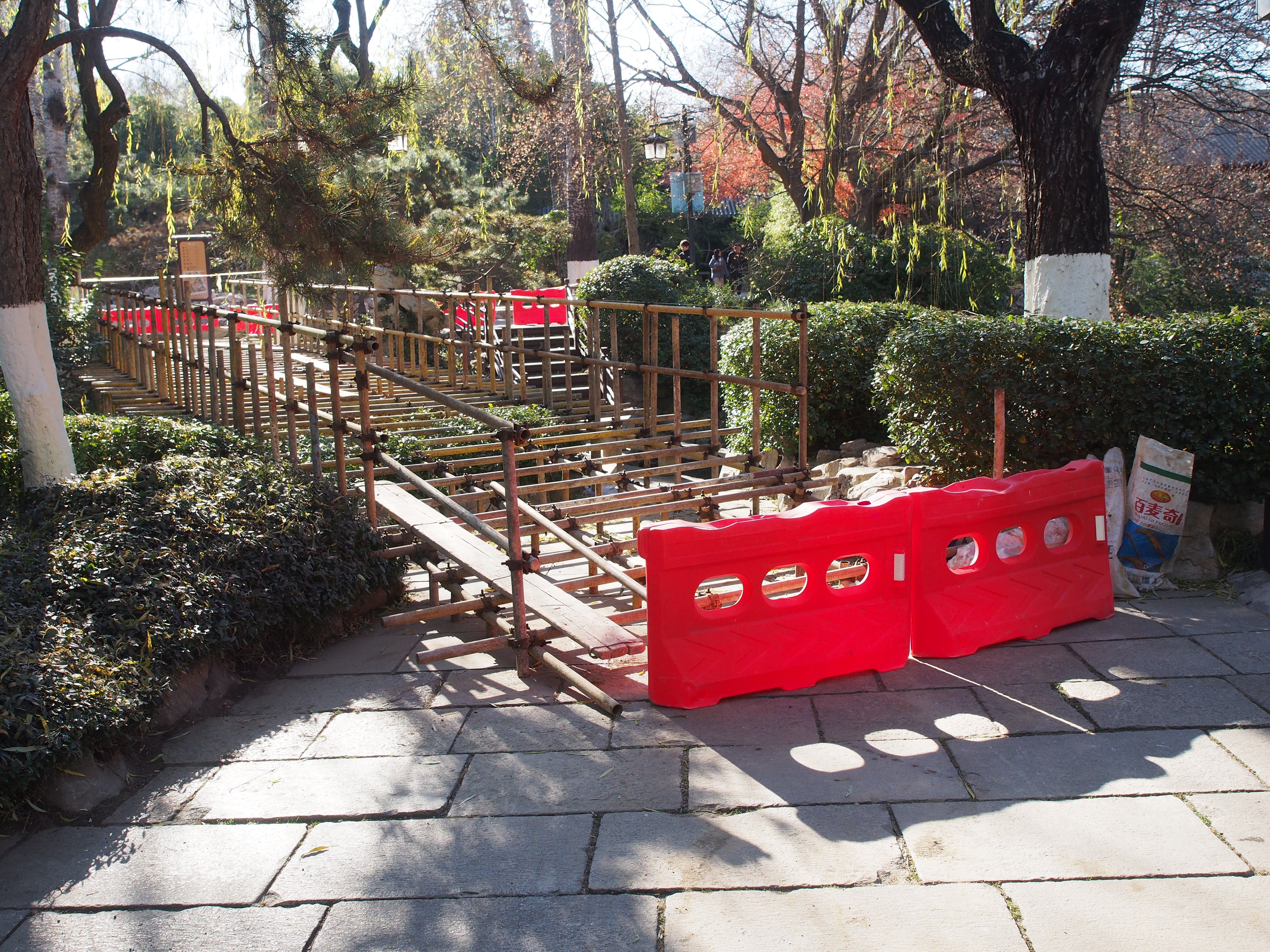 目前,济南趵突泉花灯会的花灯正在安装中。为了应对春节期间的游客高峰,防止出现拥堵,工程人员正在河道上架设数条临时安全通道,为花灯会开幕后的单向通行做好准备。