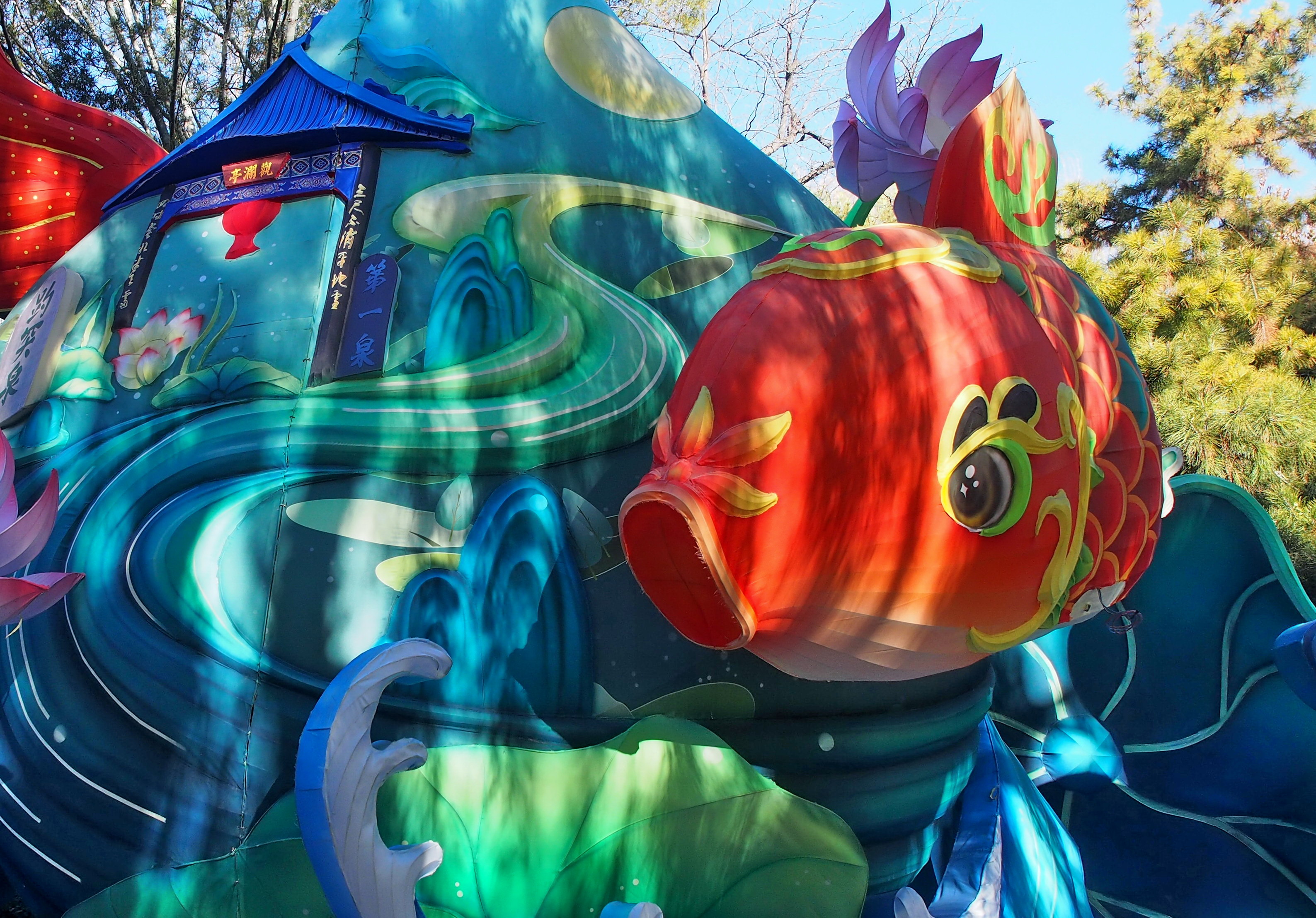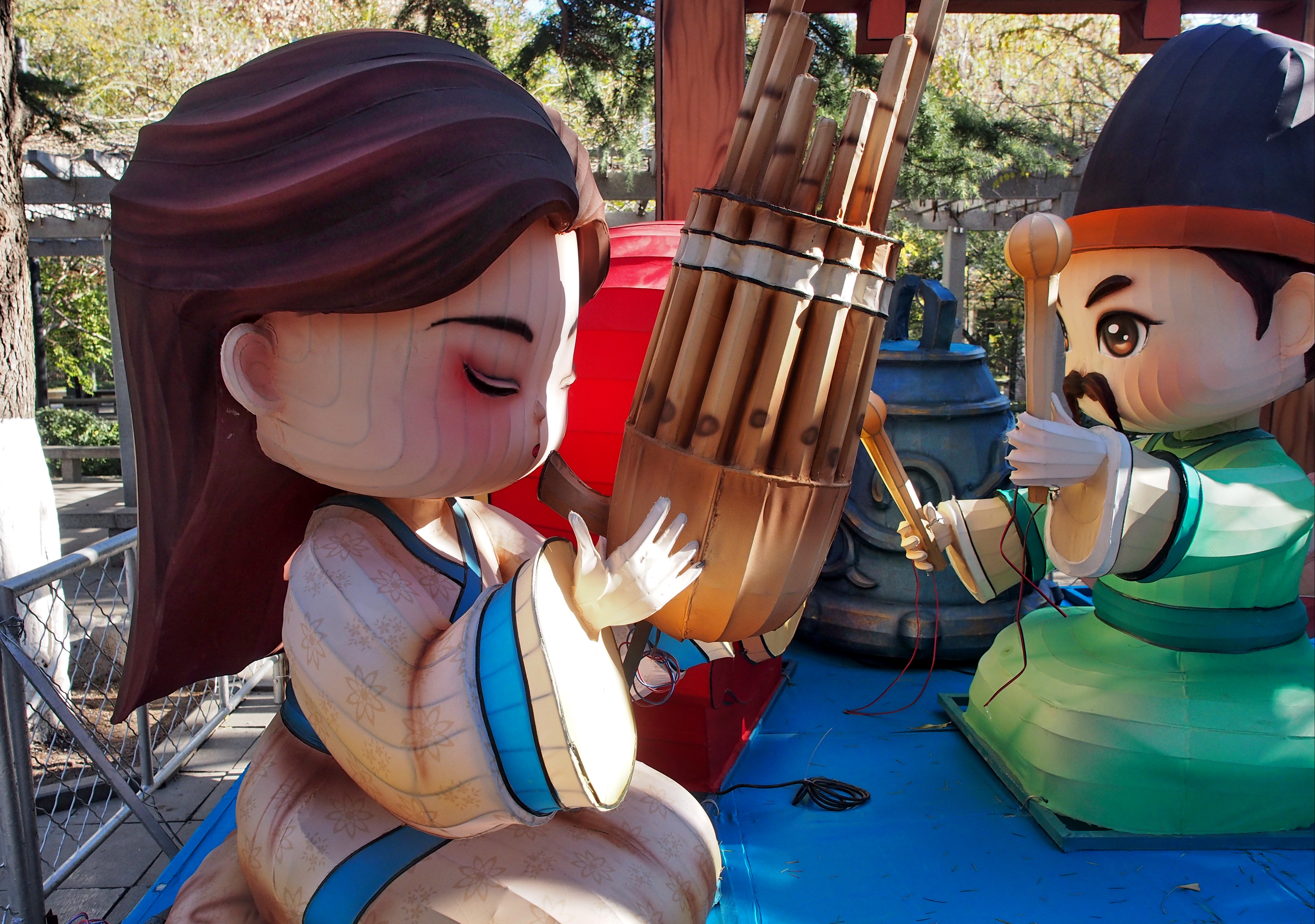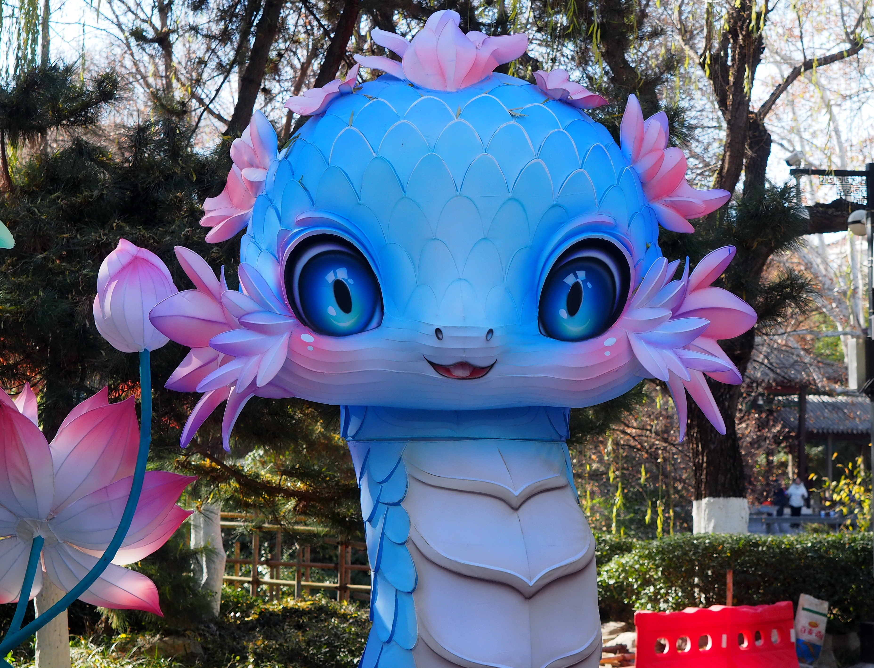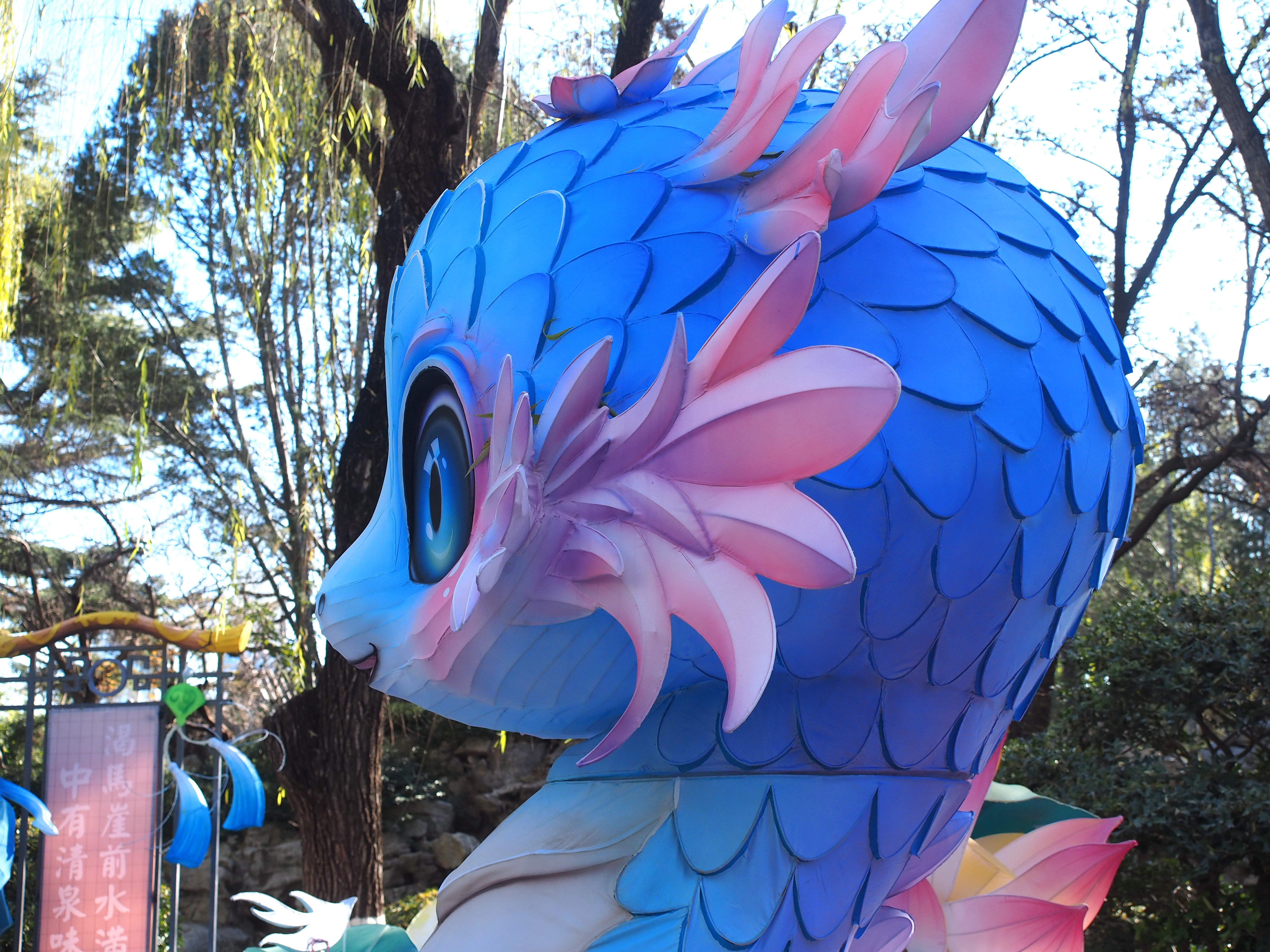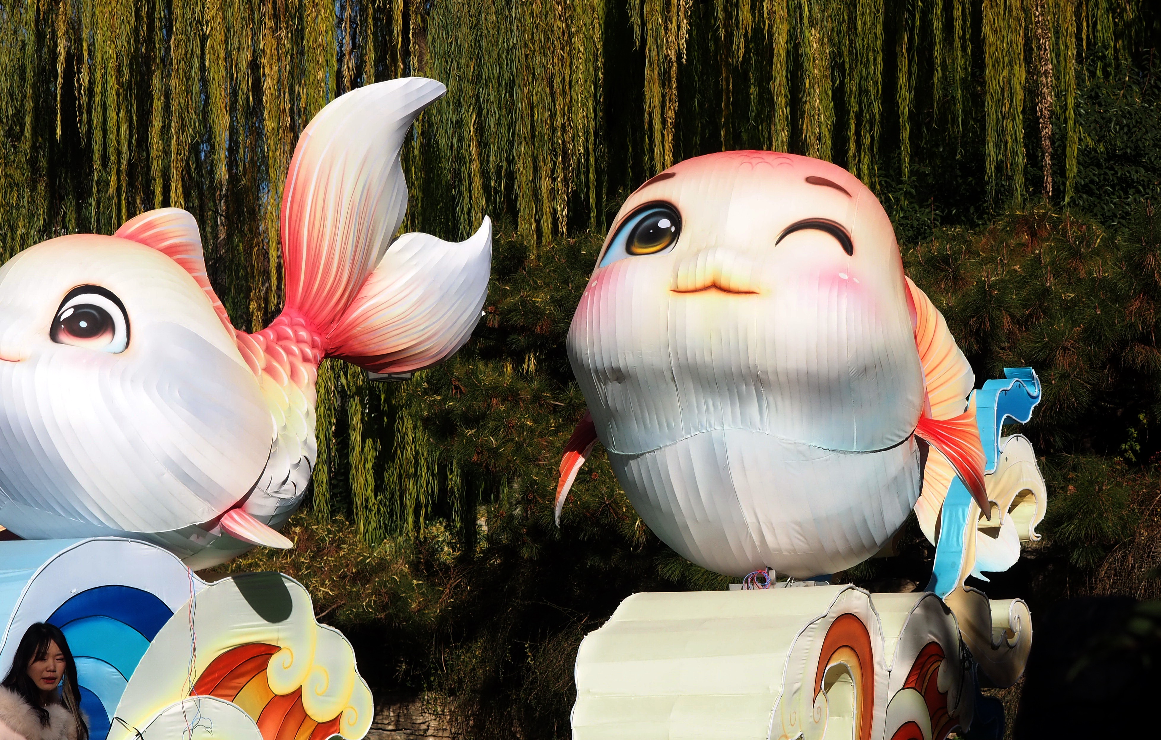 目前,济南趵突泉花灯会的花灯正在安装中。除了传统的花灯题材,灯会还设计了不少卡通人物和动物灯组。