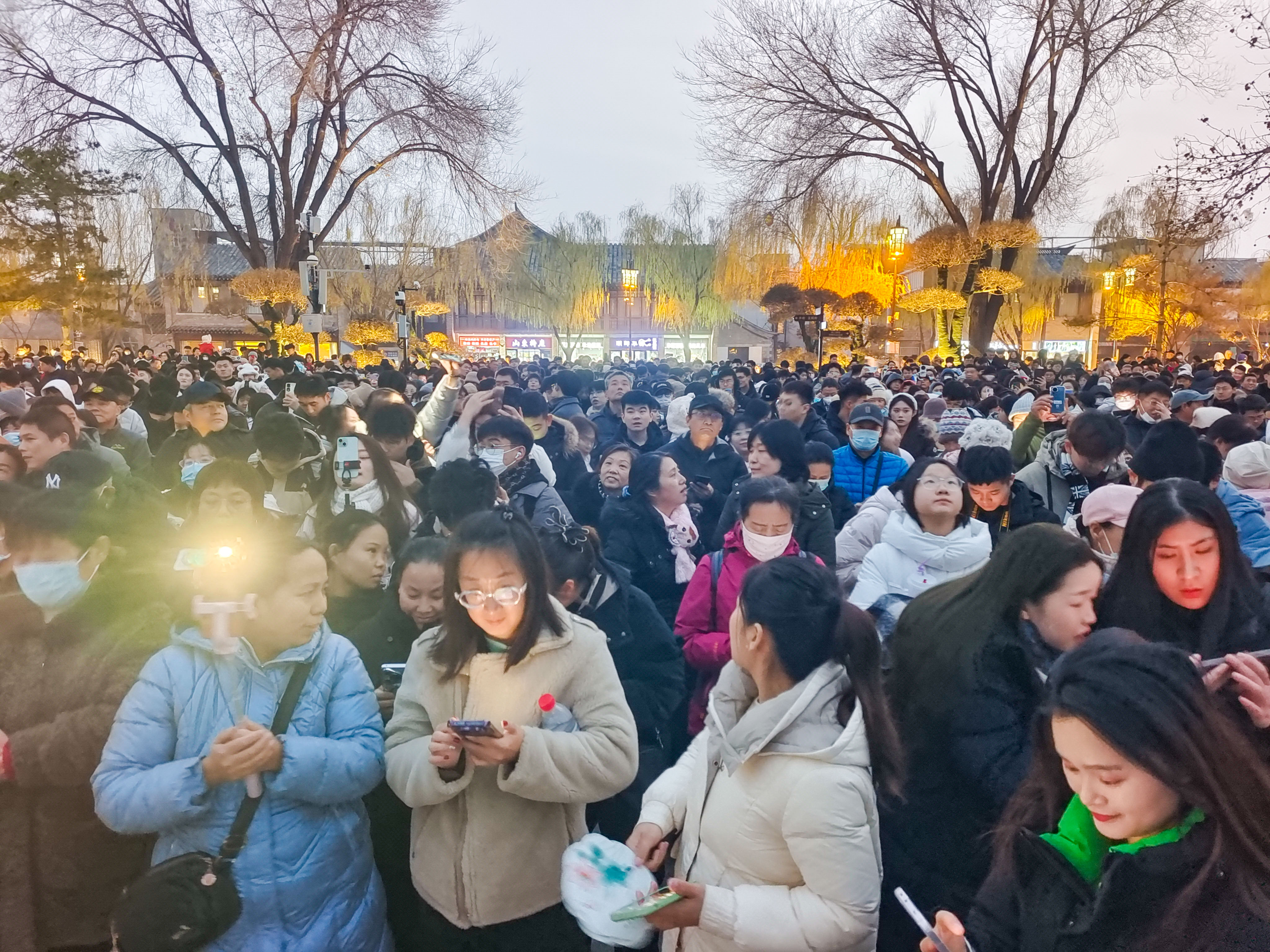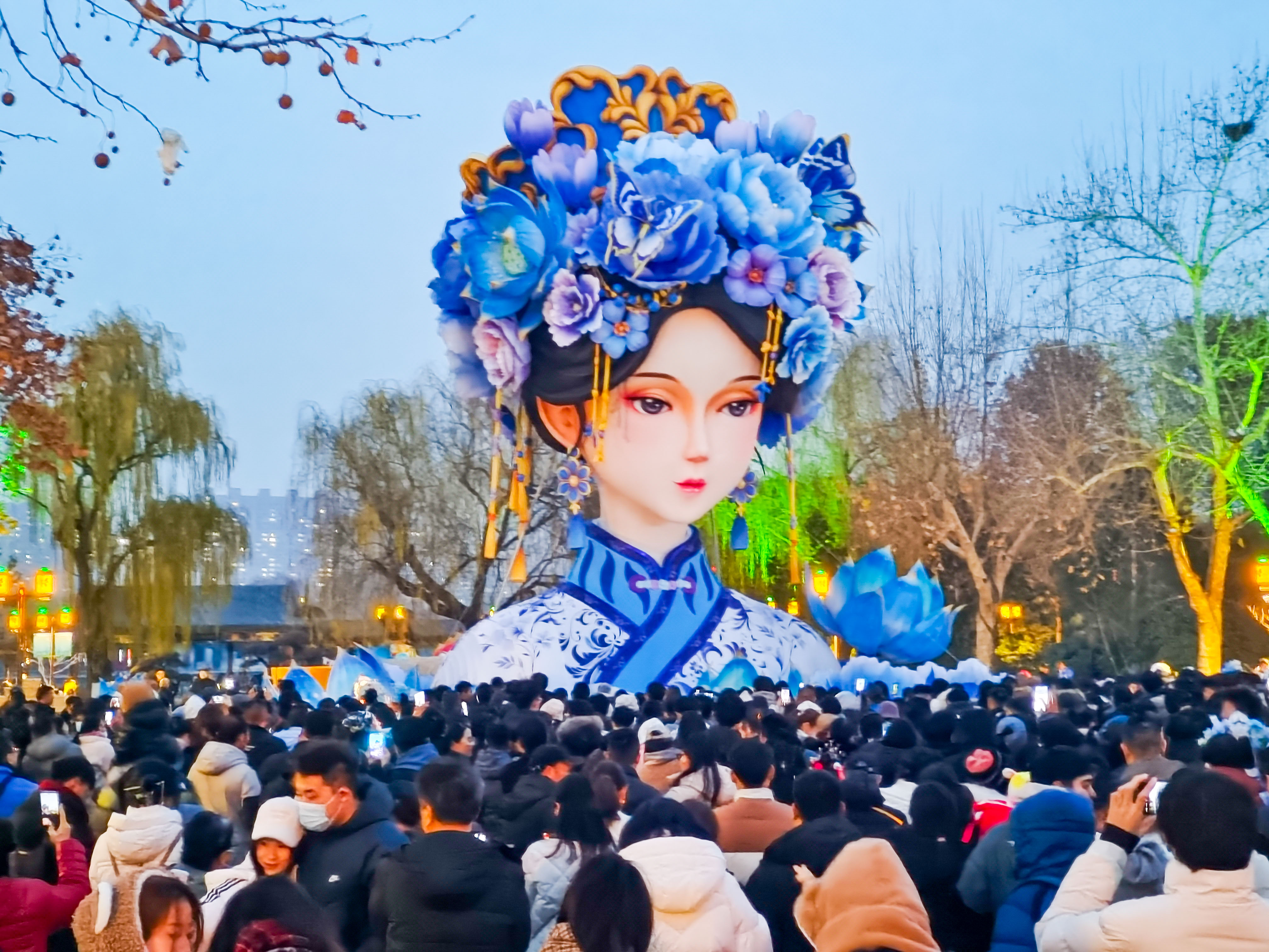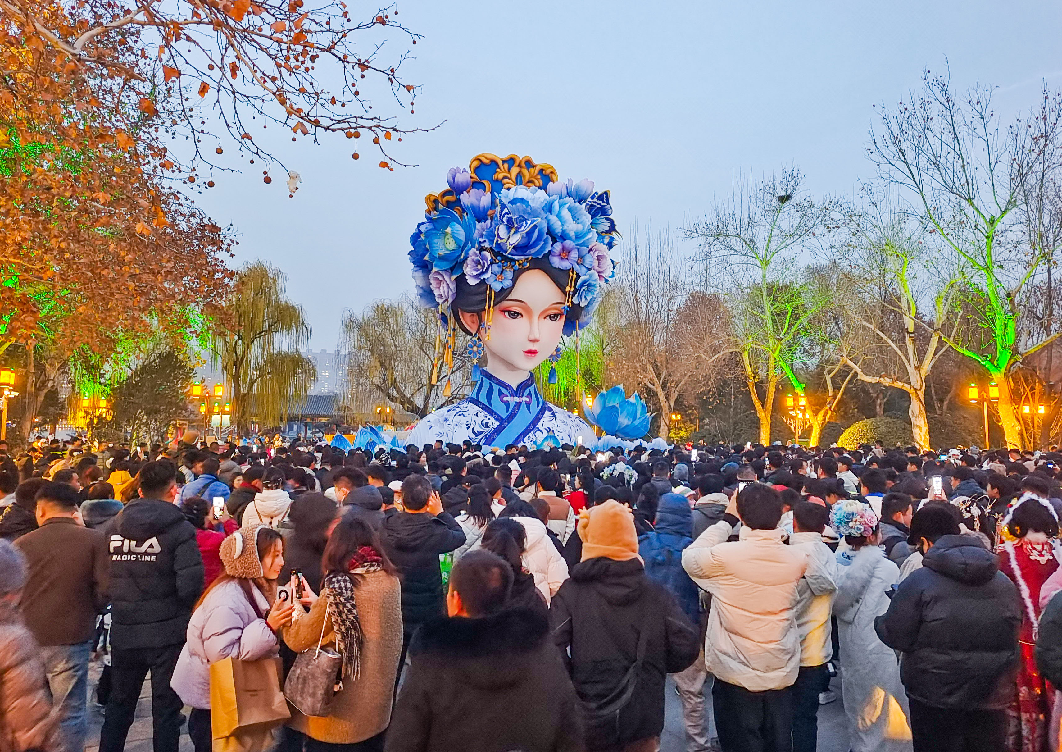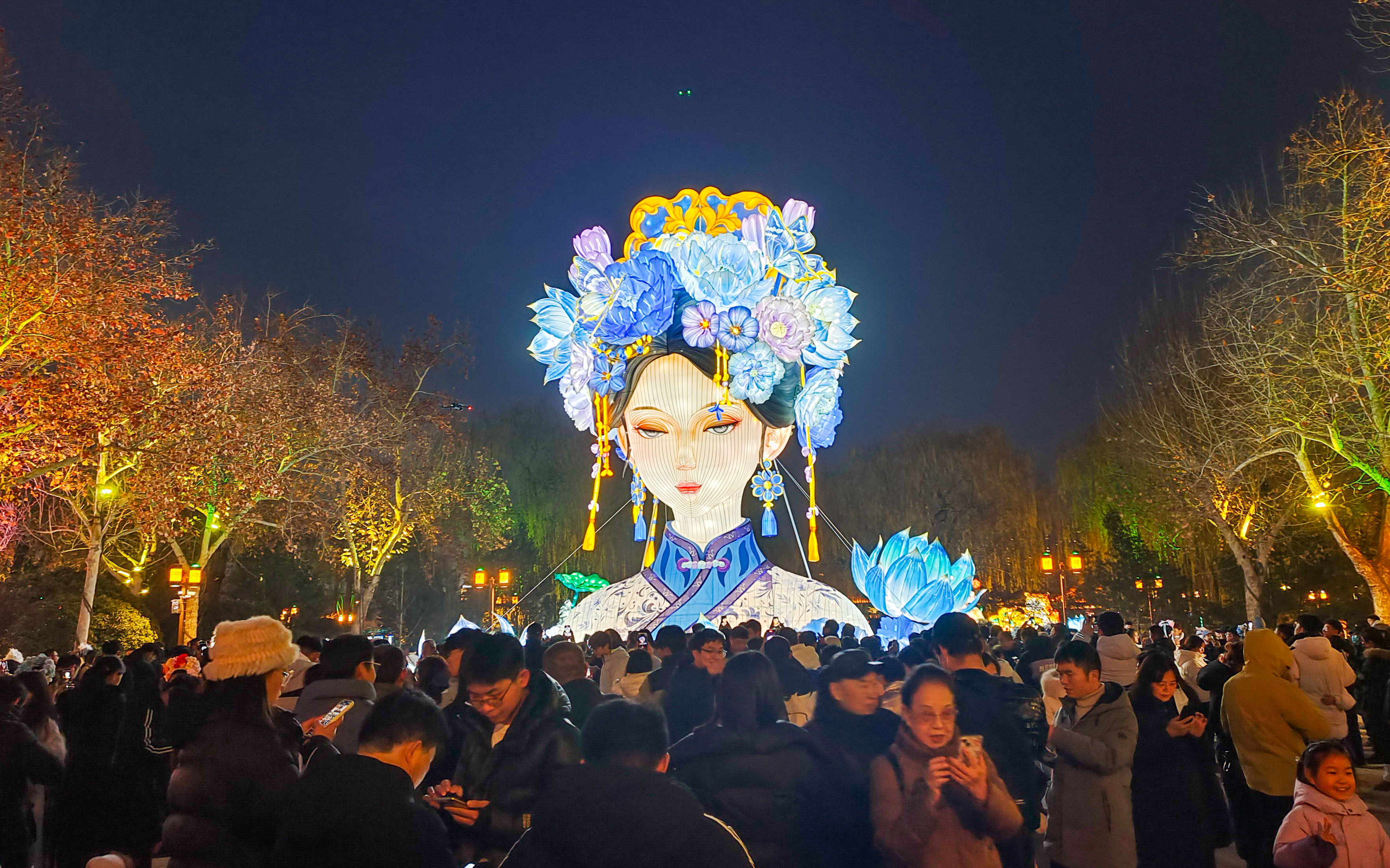齐鲁晚报·齐鲁壹点记者 周青先 12月25日下午四点,济南大明湖畔的正谊广场,“夏雨荷”巨型花灯周边已聚集了数百名游客,其中不少女孩都与“夏雨荷”是同样装束。 下午五点半,“夏雨荷”亮灯,现场一片欢呼,游客们终于等到这个美丽的时刻。众多女孩纷纷拍照、拍视频分享给亲友。 据记者了解,现场人群中,有不少来自外地的游客。