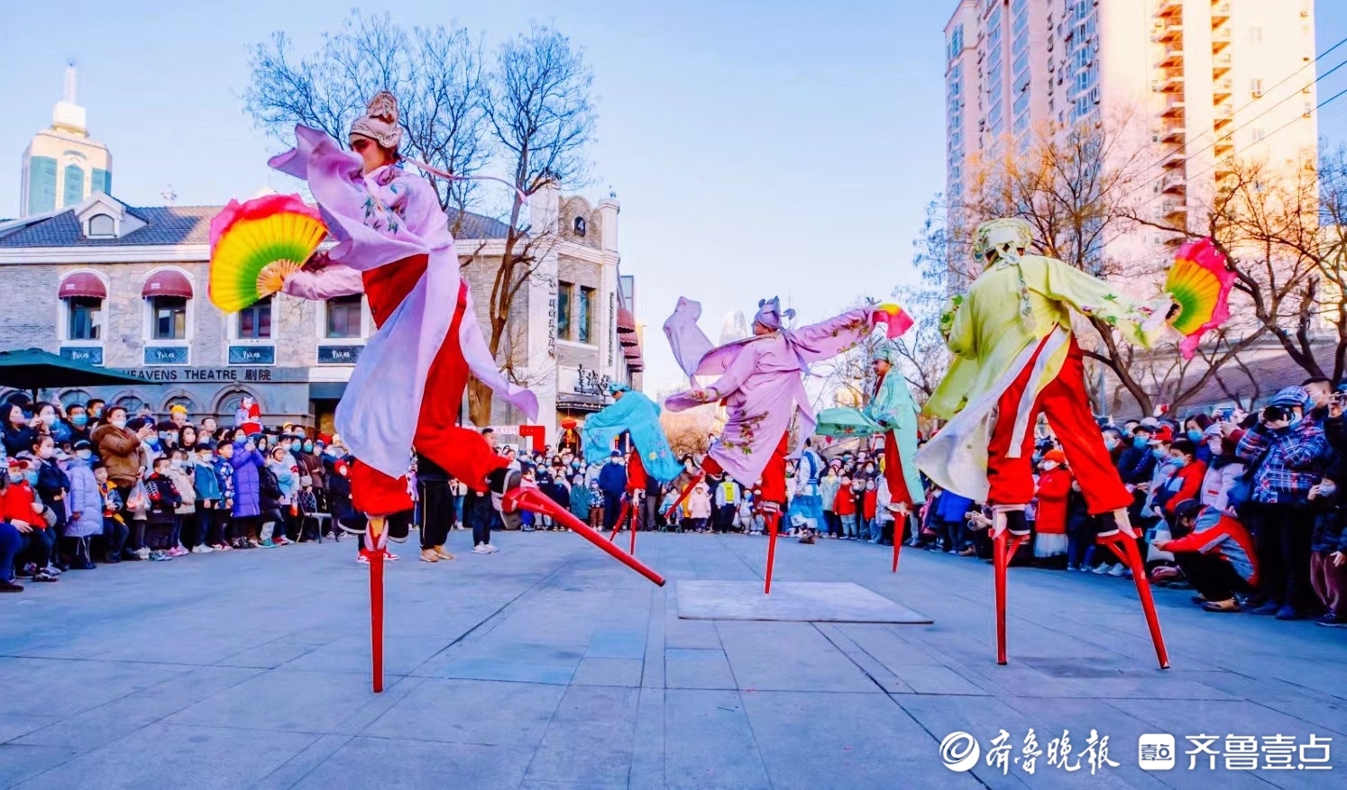 记者了解到,济南西关高跷队目前有老中青三代演员共100多人,往年从正月初一到十五,演出可达近百场。“春节期间保守估计有90场以上。”金队长说。