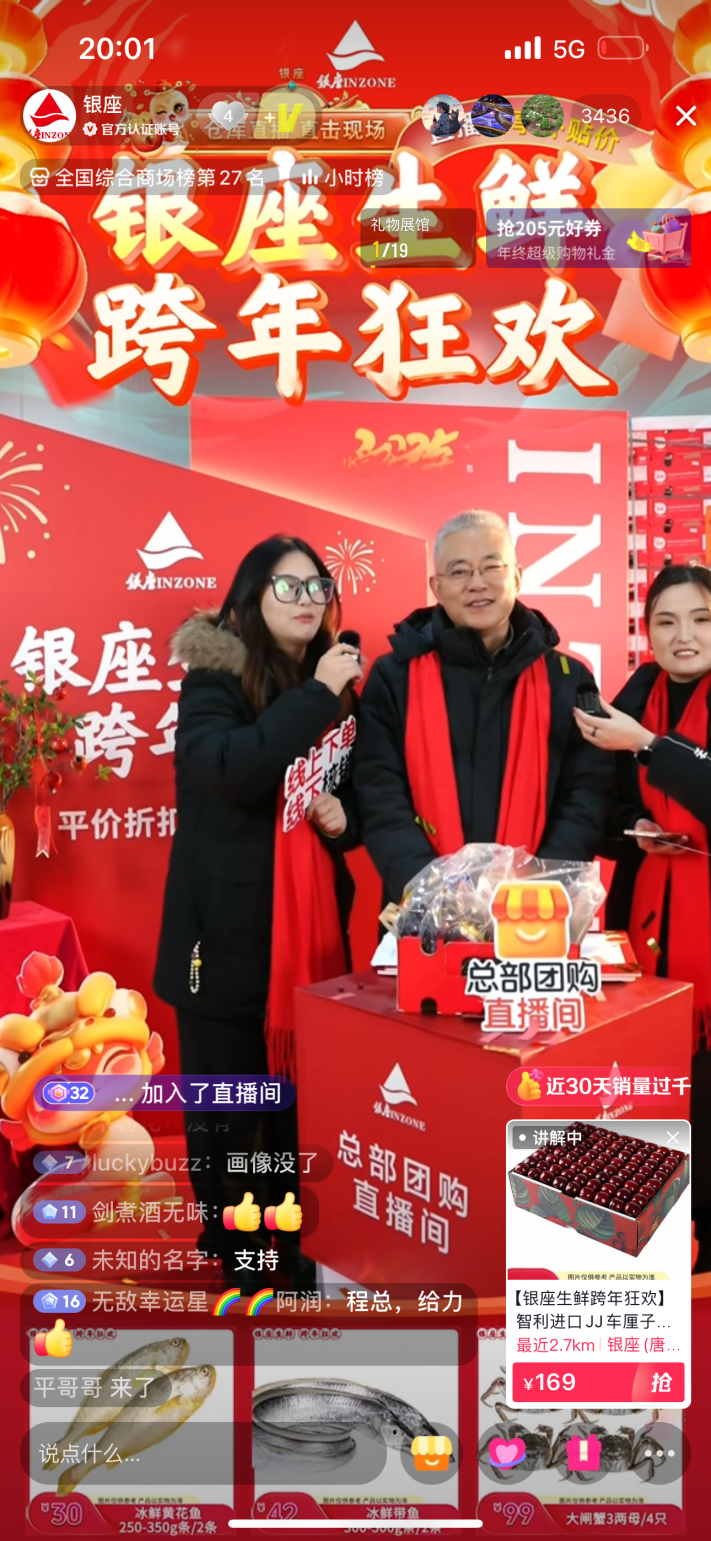 2024年12月31日晚,一场“银座生鲜2025跨年仓储直播”引爆跨年之夜,成为众多山东人的跨年新选择,迎来2025年的消费“开门红”。