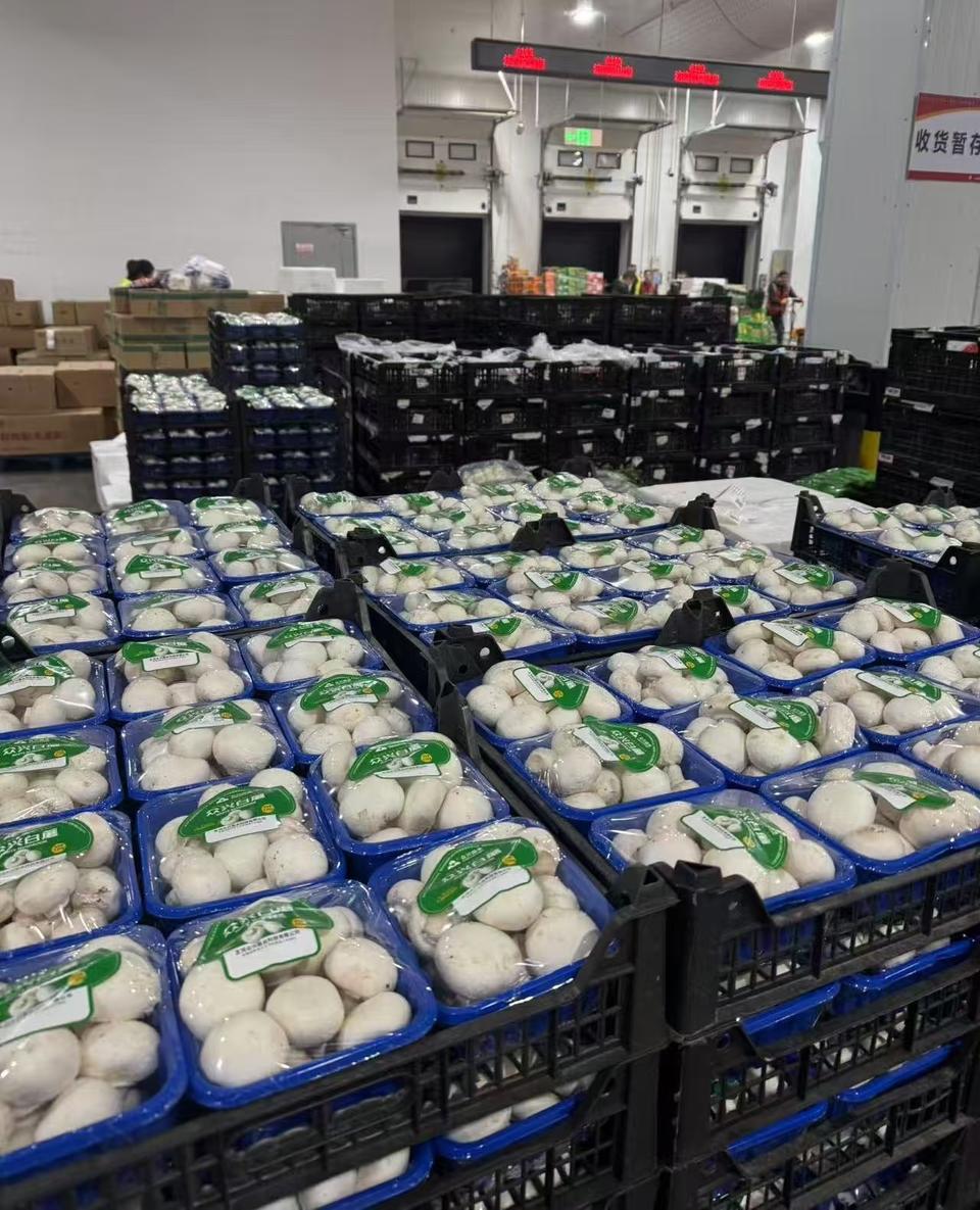 消费者尽情购买的同时,银座生鲜大仓的另一面,配送低温车也在不间断进场、卸货,工作人员有条不紊地搬运、分拣,通过“仓库源头、统一集单”让生鲜商品直达消费者。