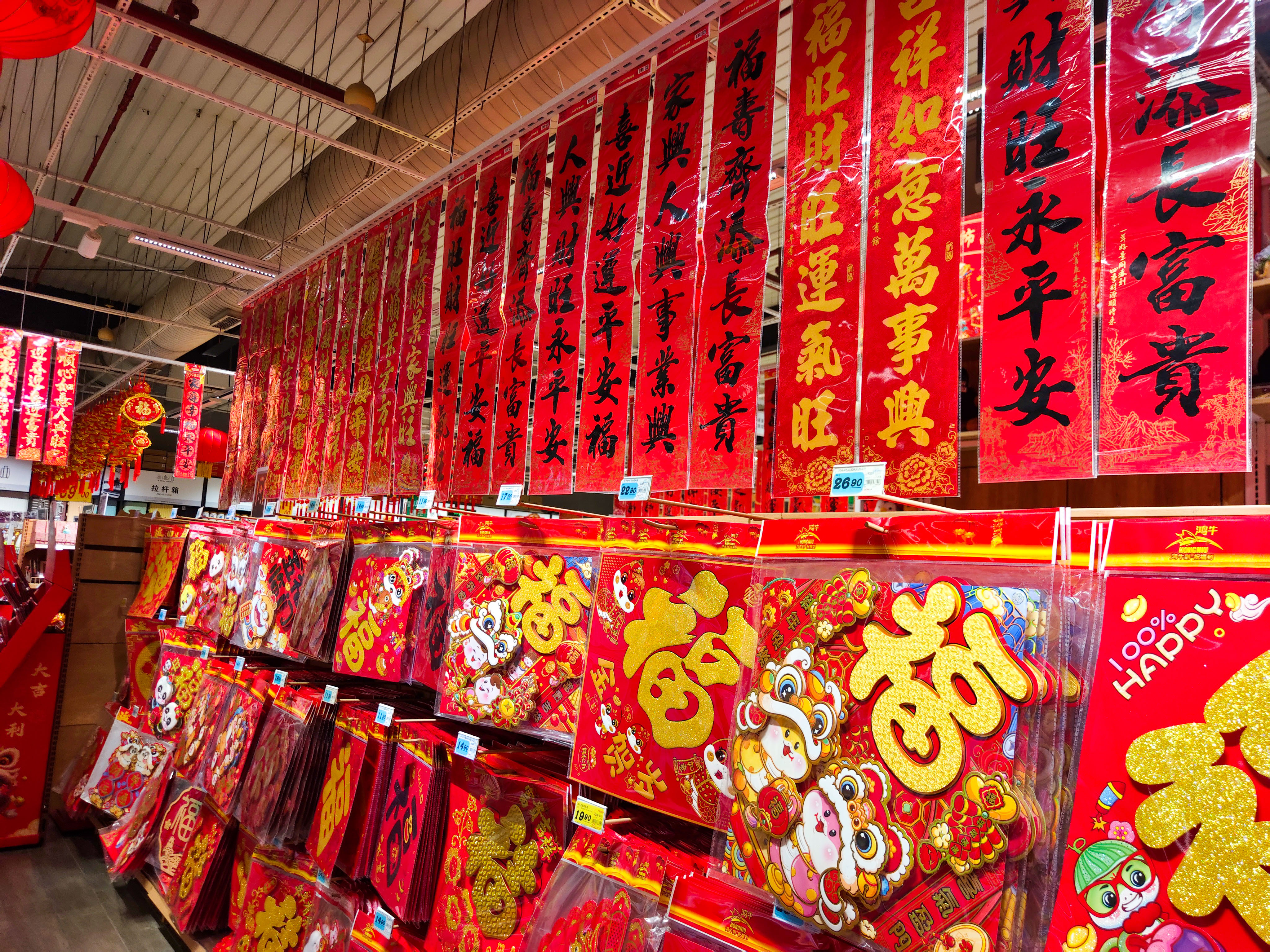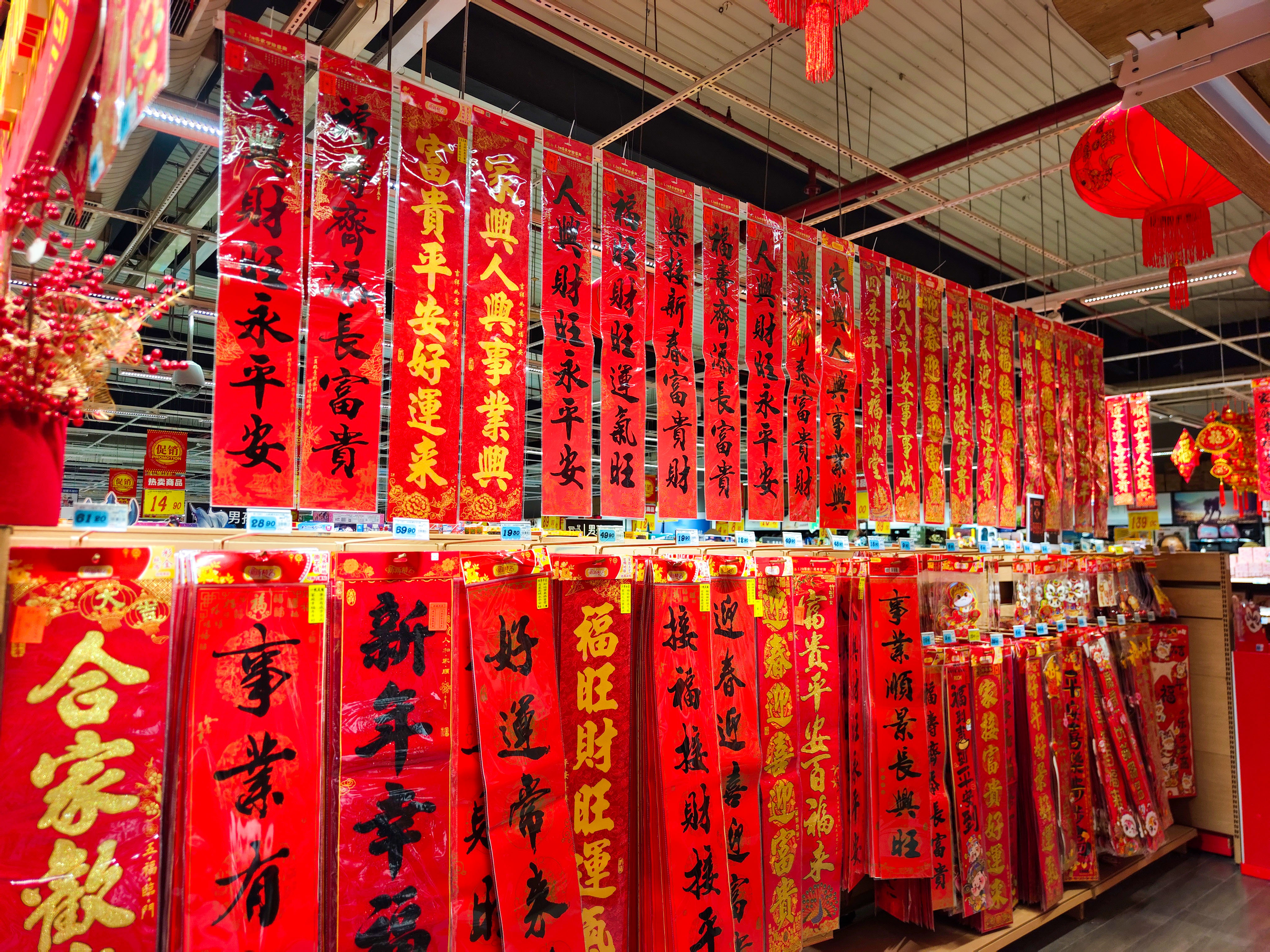 齐鲁晚报·齐鲁壹点记者 周青先 农历腊月二十一,小年即将来到,济南已经进入春节倒计时。大超市里的红火气氛犹如农村大集,年货区不仅有琳琅满目的年货年礼,还有大批红火的春节装饰品。 这些大红福字、对联、红包,营造了浓厚的过大年气氛,备受市民欢迎。