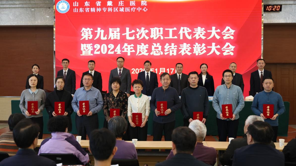 1月17日,山东省戴庄医院第九届七次职工代表大会暨2024年度总结表彰大会顺利召开。来自全院各科室的117位职工代表齐聚一堂,肩负着医院1100多名干部职工的重托,履行神圣职责,共同商讨谋划2025年医院高质量发展大计。医院领导班子成员、职工代表、中层干部、护士长、医疗组长和受表彰人员代表参加会议。大会由医院党委副书记李武主持。