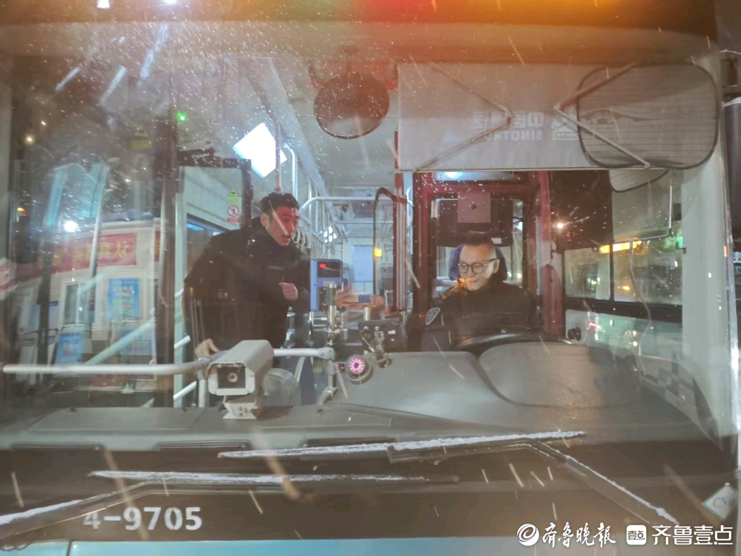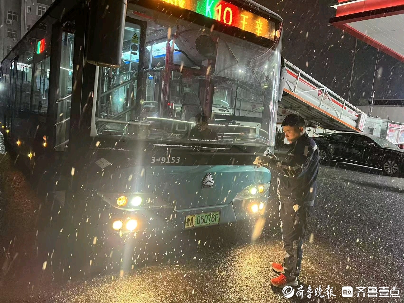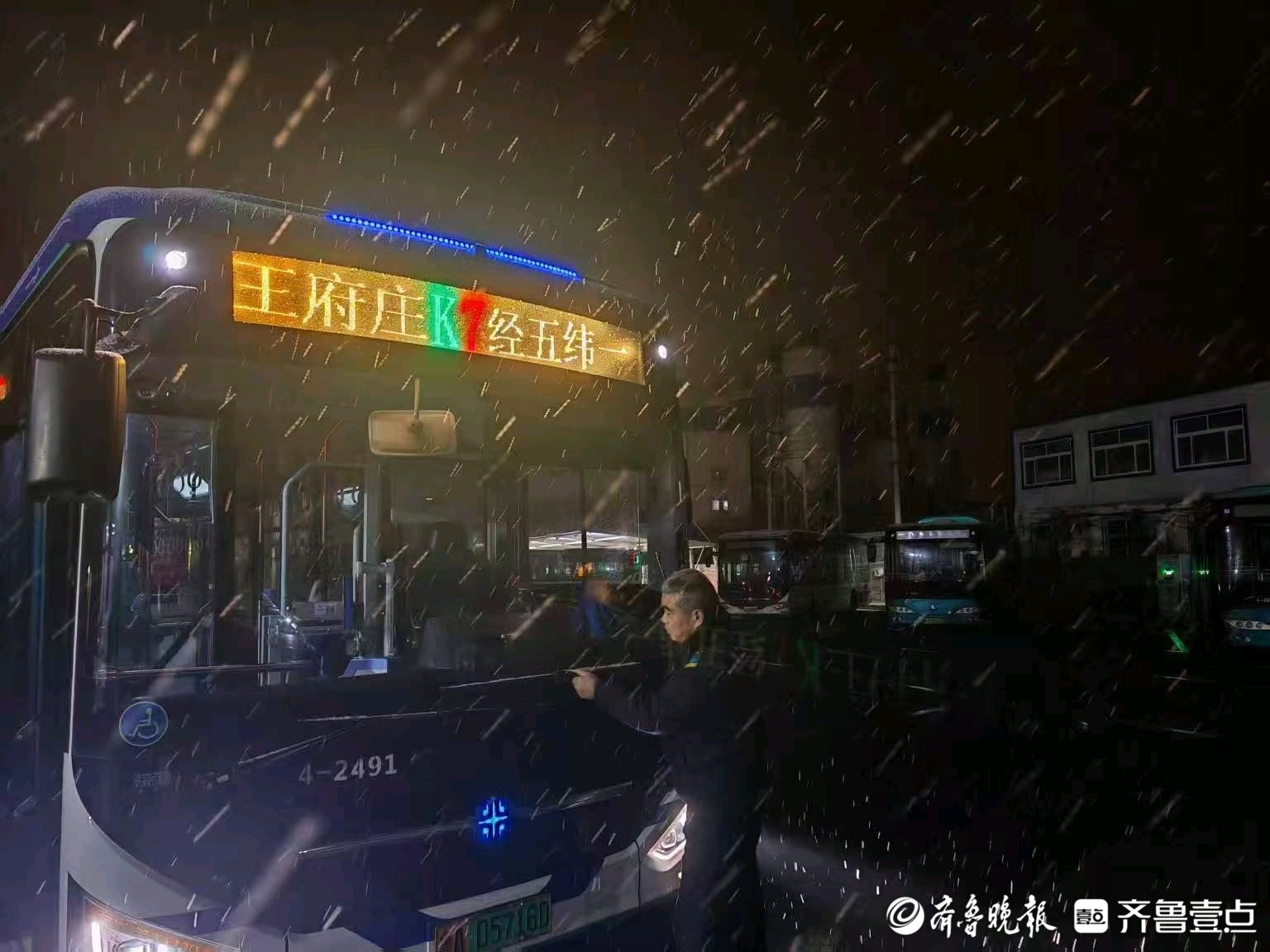 齐鲁晚报·齐鲁壹点 于泊升 1月26日,济南迎来降雪,为保障市民乘客正常出行和春运旅客出行,济南公交迅速启动冰雪寒潮天气应急预案,广大公交职工连夜奋战,从车辆保障、营运服务、线路勘察、安全运行、站点值守及积雪清理等多个方面做好应对,同时坚持做好“高铁不到站 公交不收车”服务,为凌晨到济的高铁临时列车旅客提供温馨出行服务。