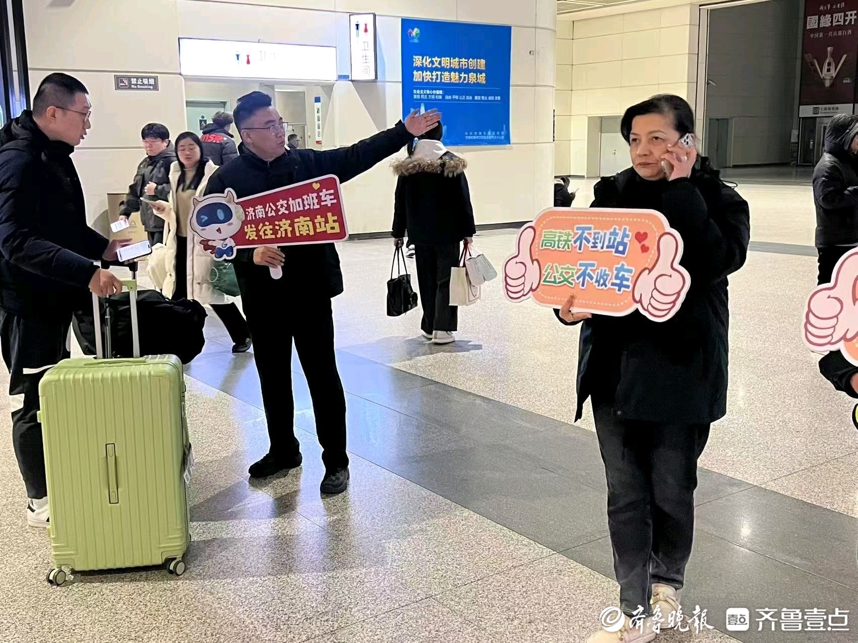 齐鲁晚报·齐鲁壹点 于泊升 1月25日,济南公交东部公司夜间接到济南东站高铁对接信息,高铁G5546列车晚点至26日0时58分。按照“高铁不到站,公交不收车”的服务承诺,东部分公司五队启动应急预案,通过“响应式公交模式”为旅客提供公交服务,管理人员带领驾驶员到出站口进行宣传,现场引导乘客扫码“响应式公交”小程序预约乘坐。