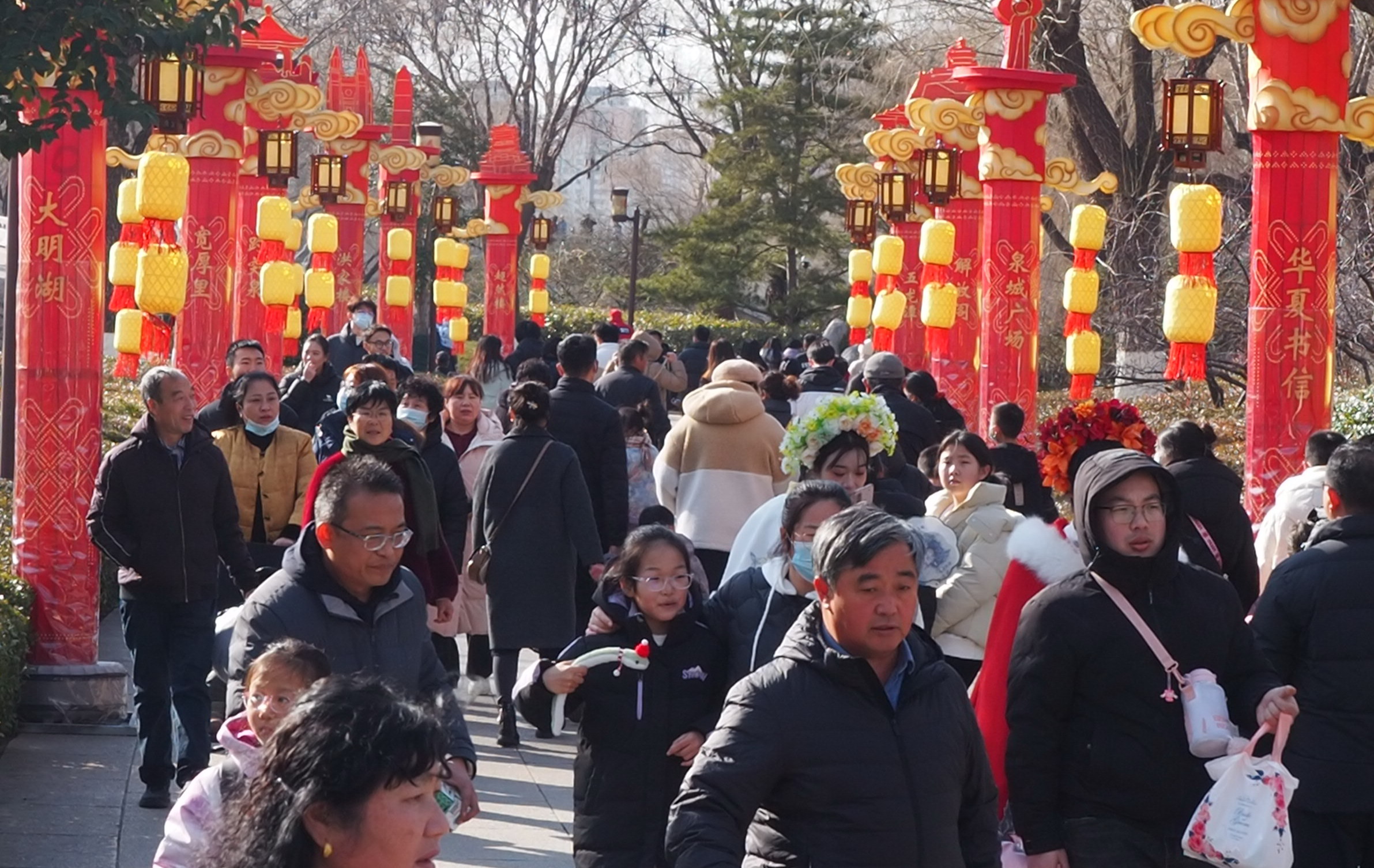 2月12日,雨后的济南阳光明媚,大明湖畔一片欢乐的节日气氛。