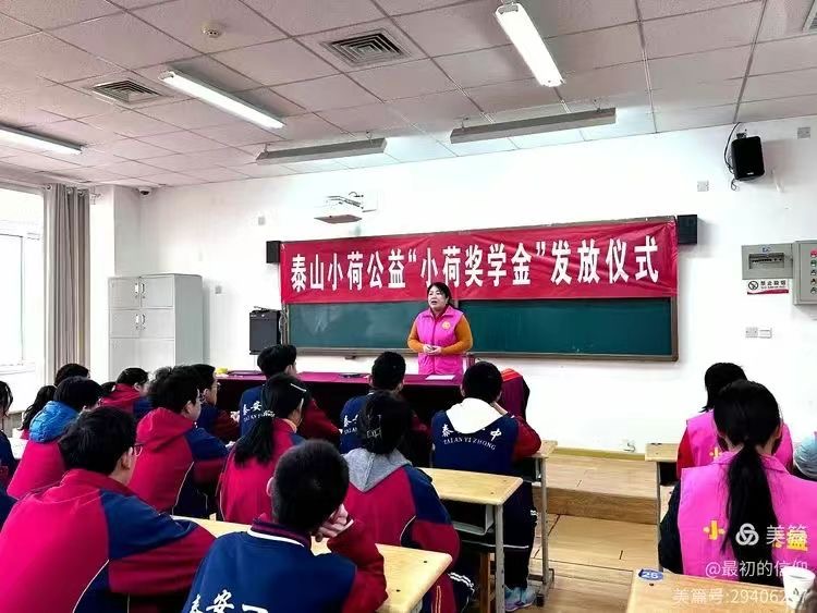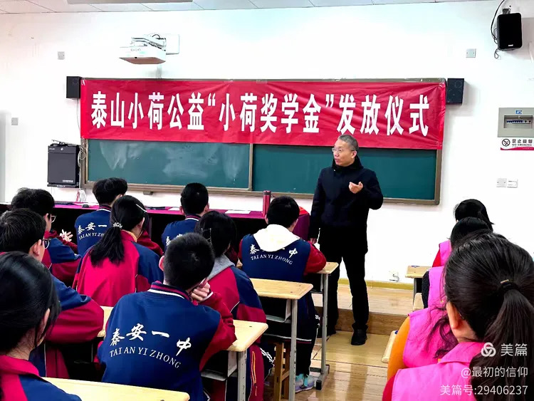 爱心如春风,润物细无声。2月22日上午,泰安一中新校区举行了“小荷奖学金”发放仪式,泰山小荷公益执行理事长赵伟娜、理事赵秀丽,小荷奖学金出资人柳艳玫、王秋彤,高三年级主任马启银,新校区2022级教师、泰山小荷公益志愿者王芝,24名优秀学生代表参加活动。