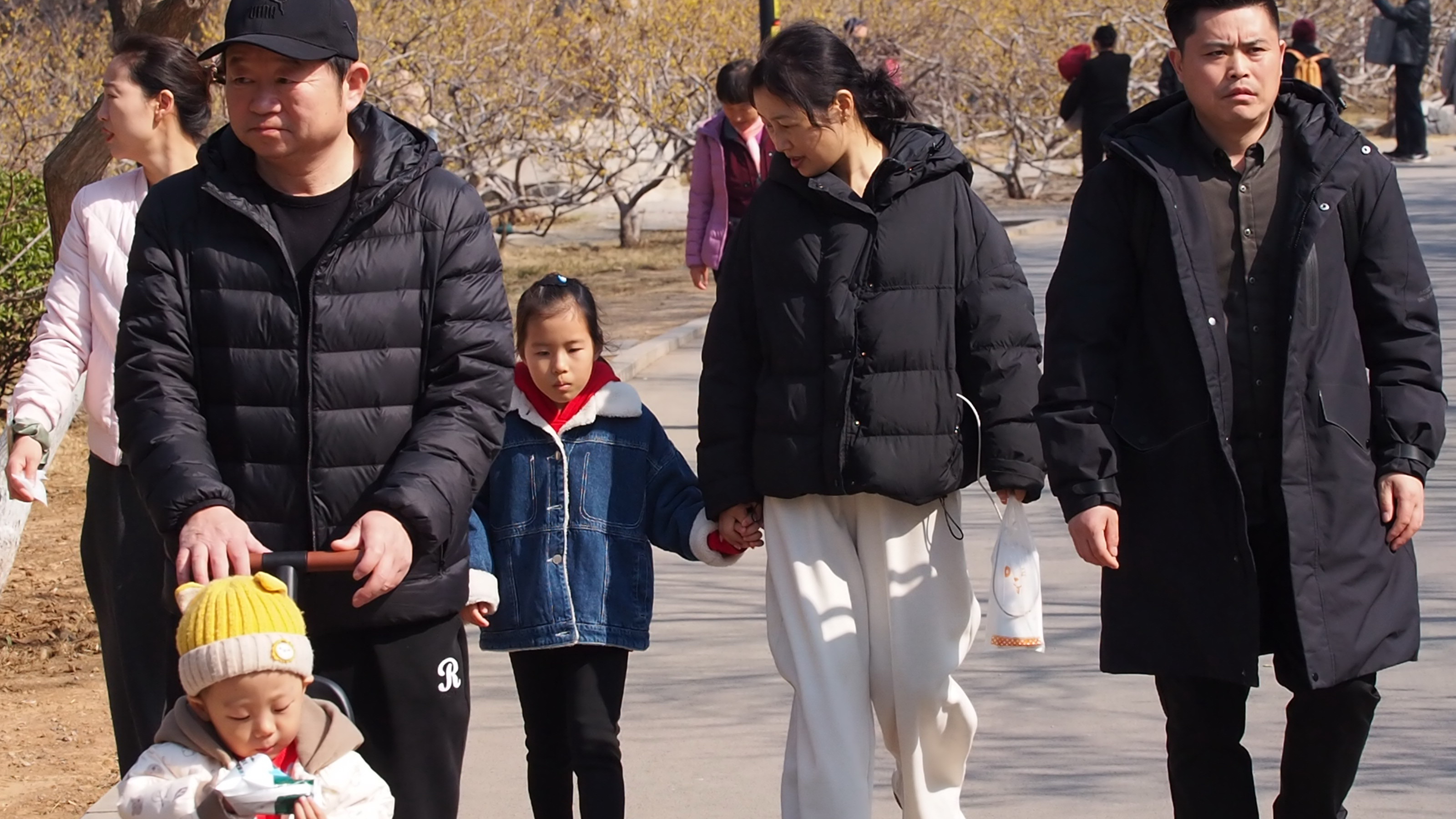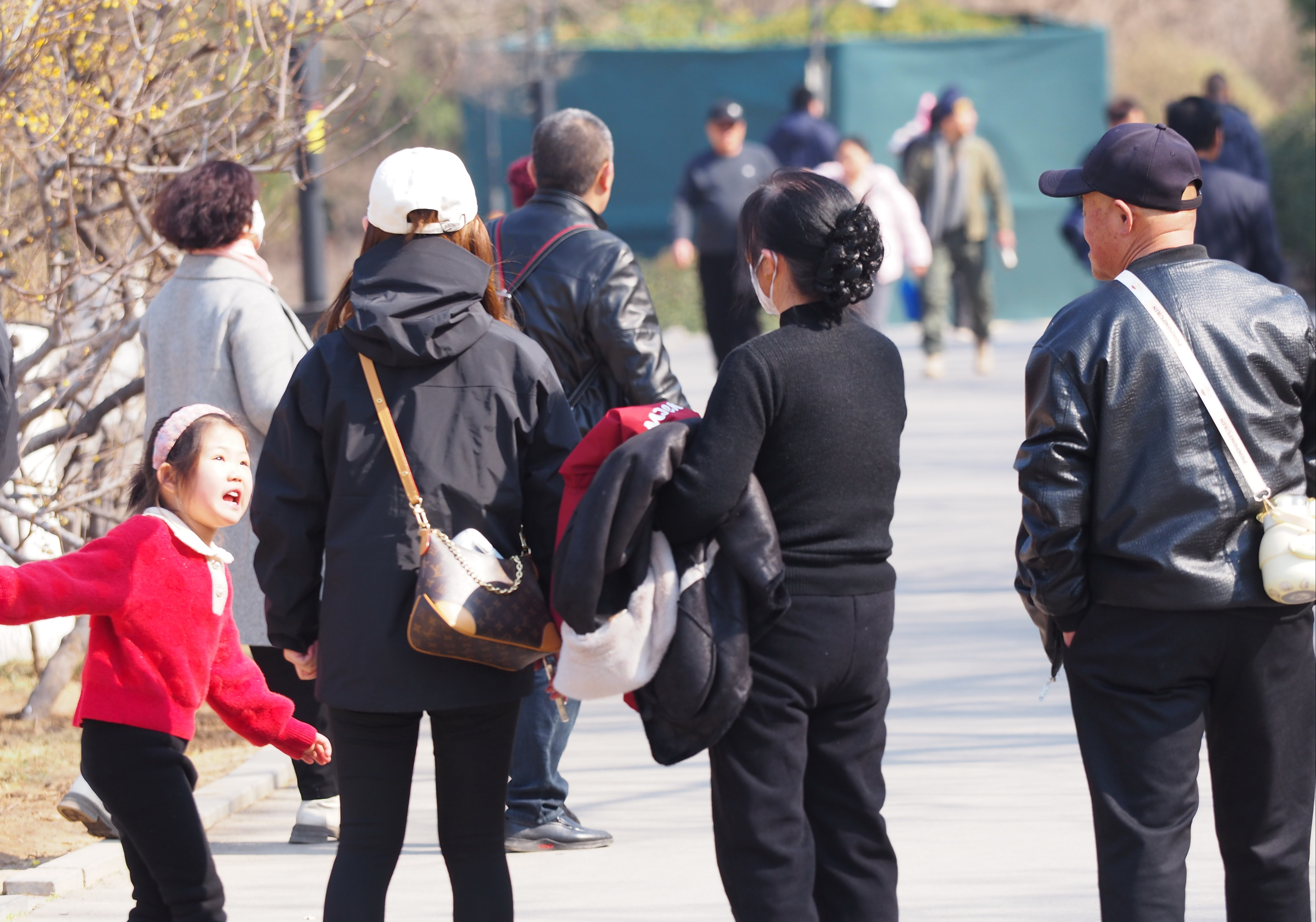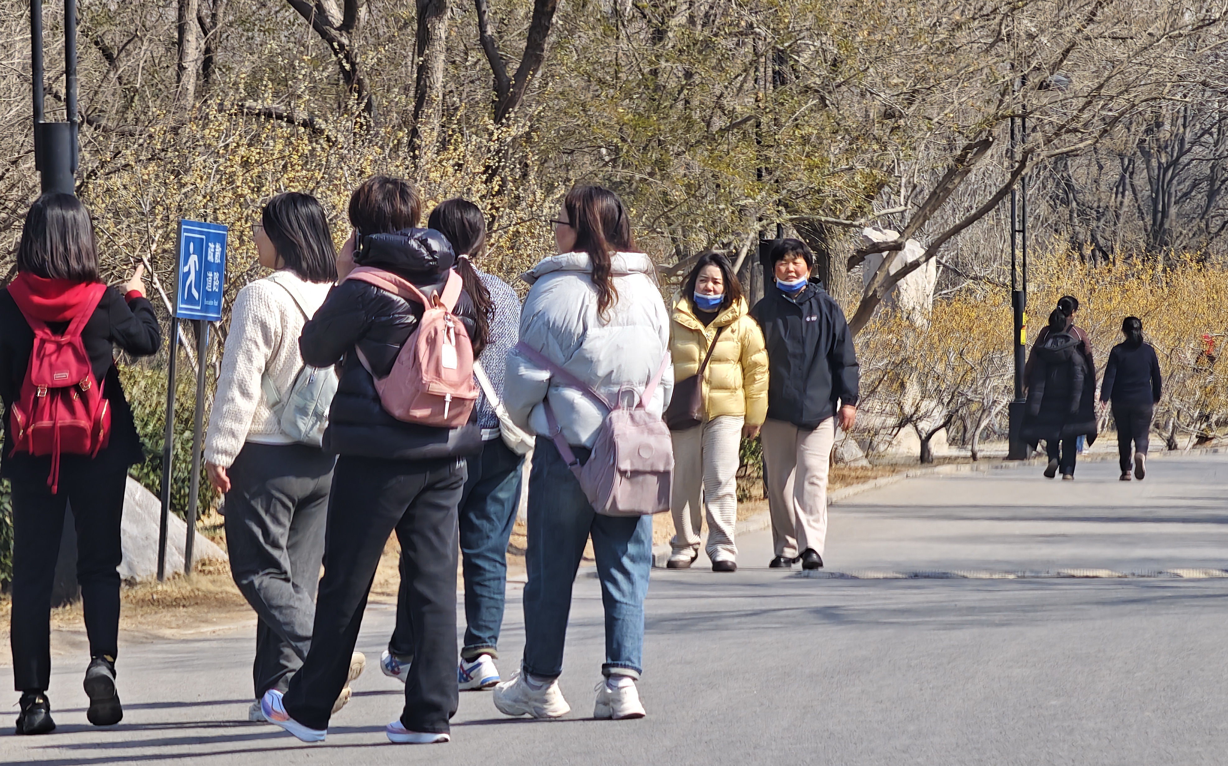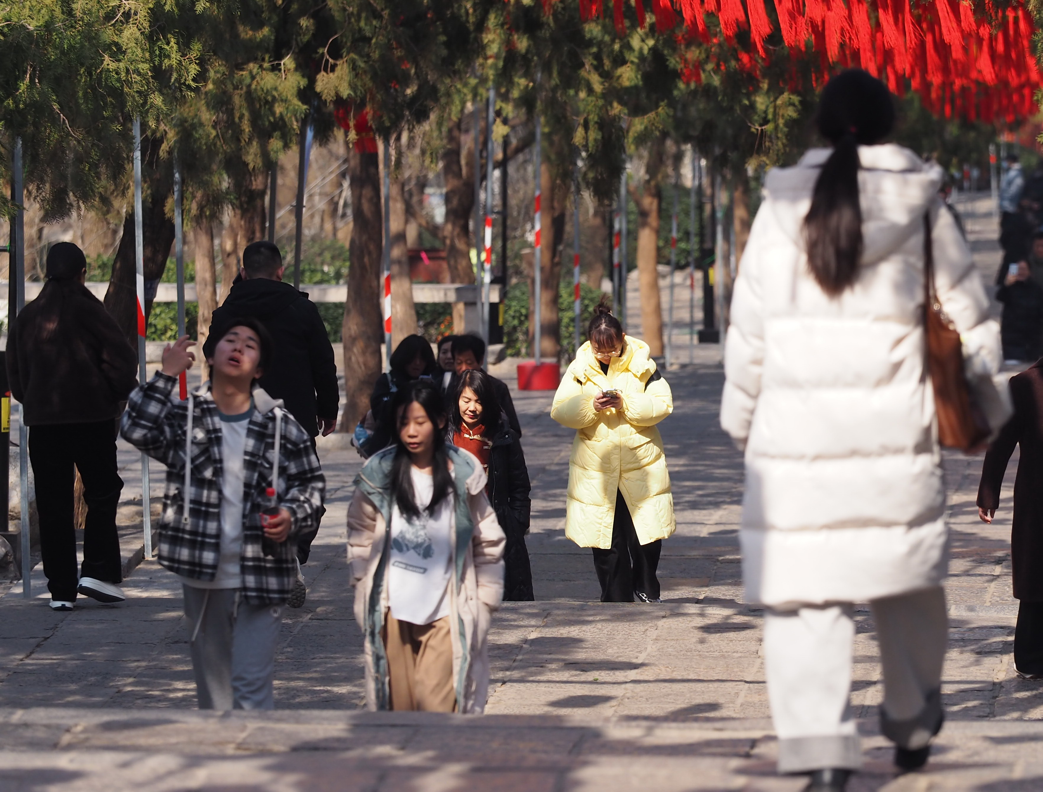 千佛山景区,大批市民进山欣赏春色,很多人脱掉了棉衣,“轻装”游园。