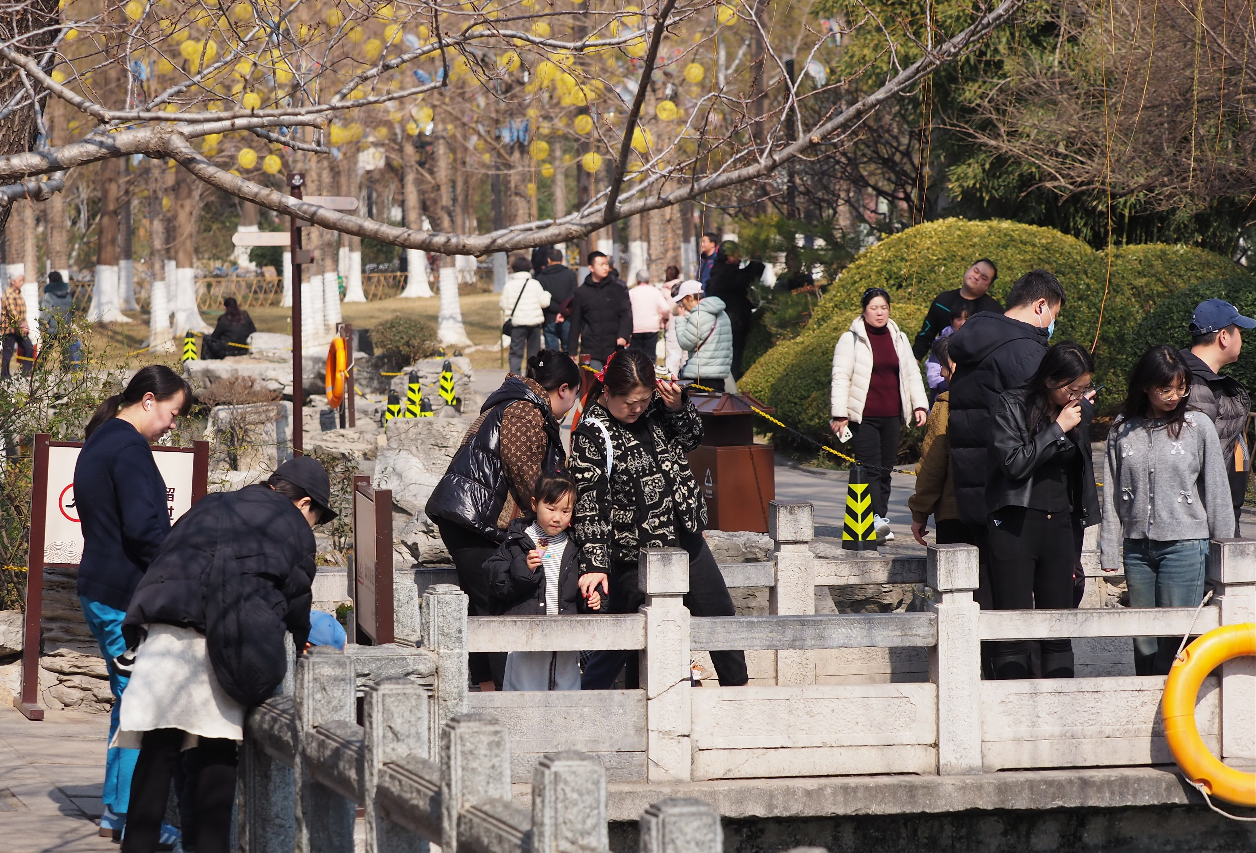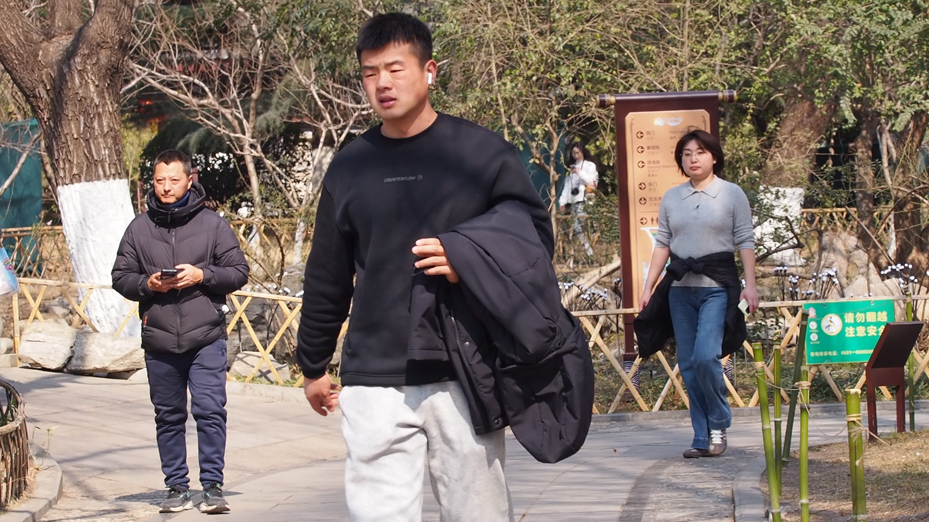 2月26日,济南中午的气温迅速升高到17℃左右,市区公园里春色渐露,游客们纷纷脱掉棉衣。