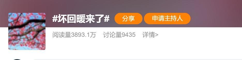 在社交平台,记者注意到,“坏回暖来了”词条登上了热搜。