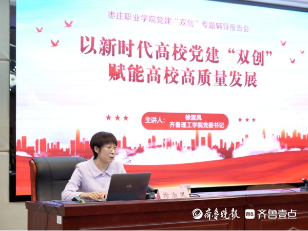 为扎实推动新时代高校党建示范创建和质量创优工作,以高质量党建引领高质量发展,3月6日,学院举办党建“双创”专题辅导报告会,邀请齐鲁理工学院党委书记徐淑凤应邀作题为《以新时代高校党建“双创”赋能高校高质量发展》的专题辅导报告。学院党委书记郝荣平主持会议并讲话,学院领导班子成员,各党(总)支部书记、副书记、支部委员、各系(院)团总支负责人和党建“对标争先”建设工作专班人员参加会议。