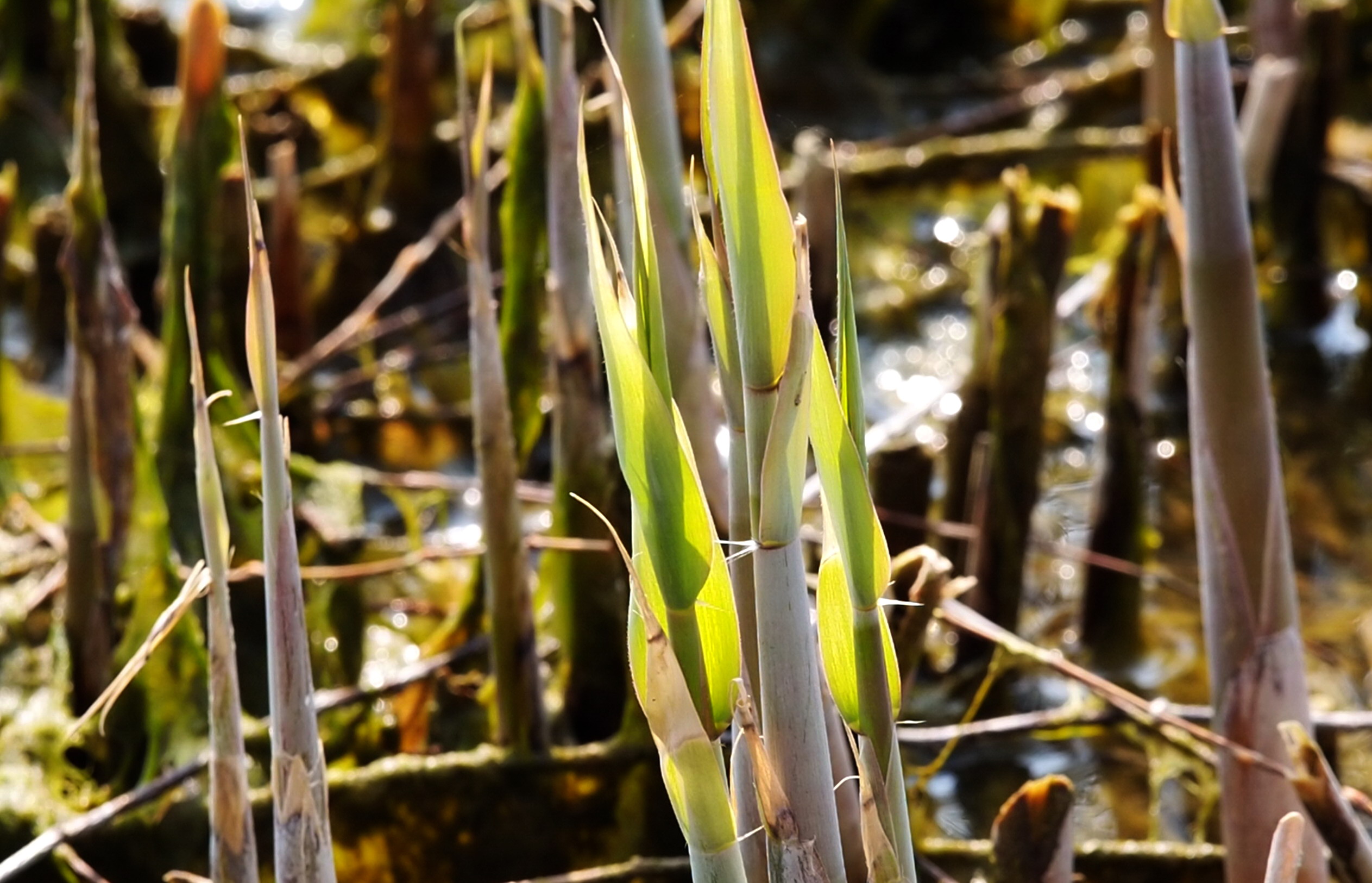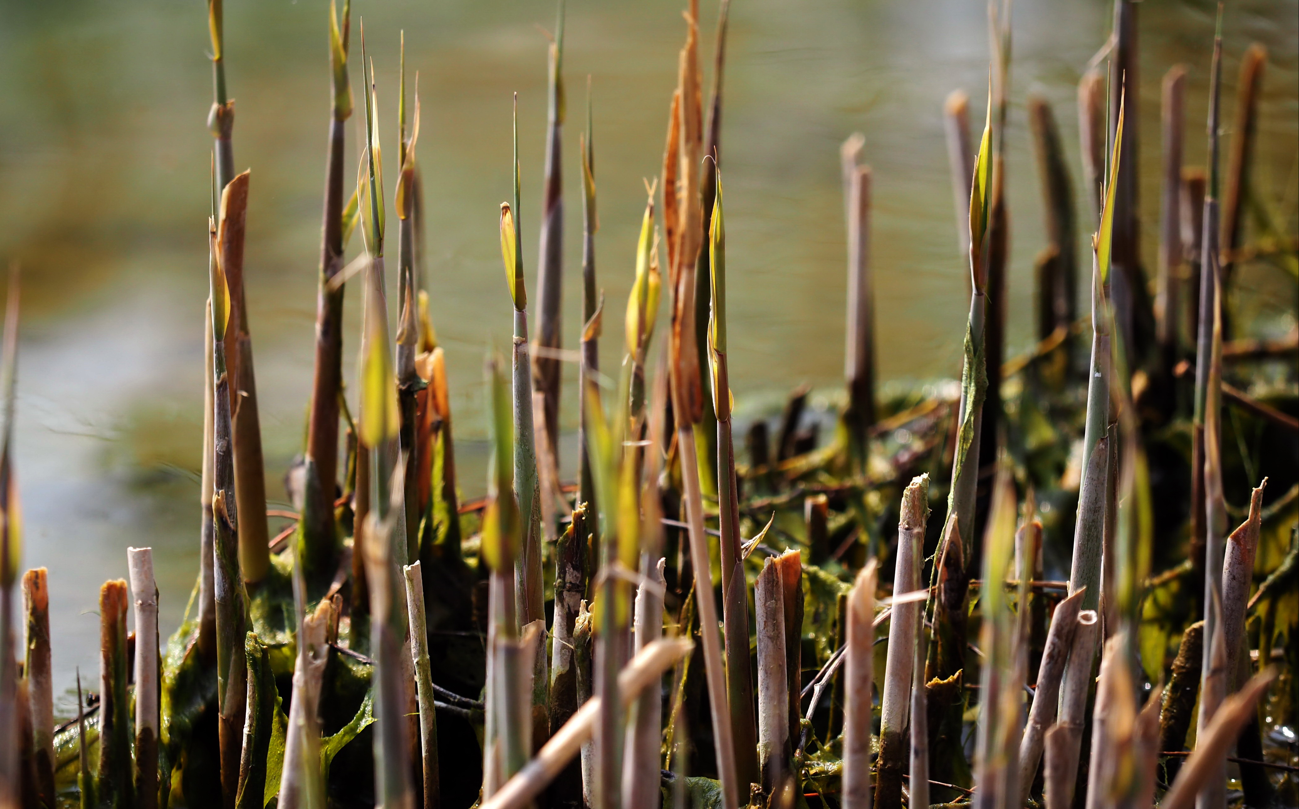 3月13日,济南大明湖畔,芦苇开始萌发新芽,在阳光下生机勃勃。
