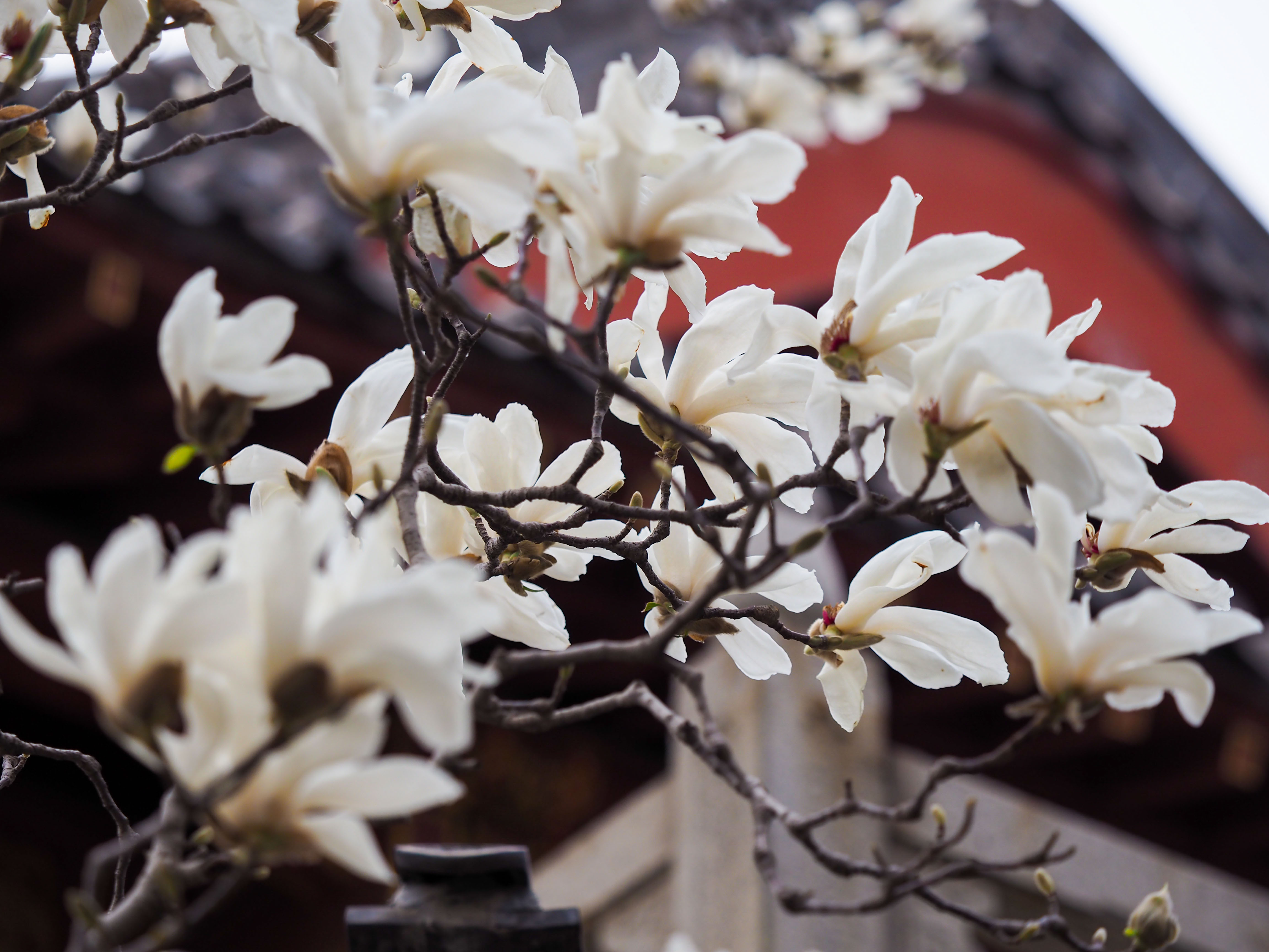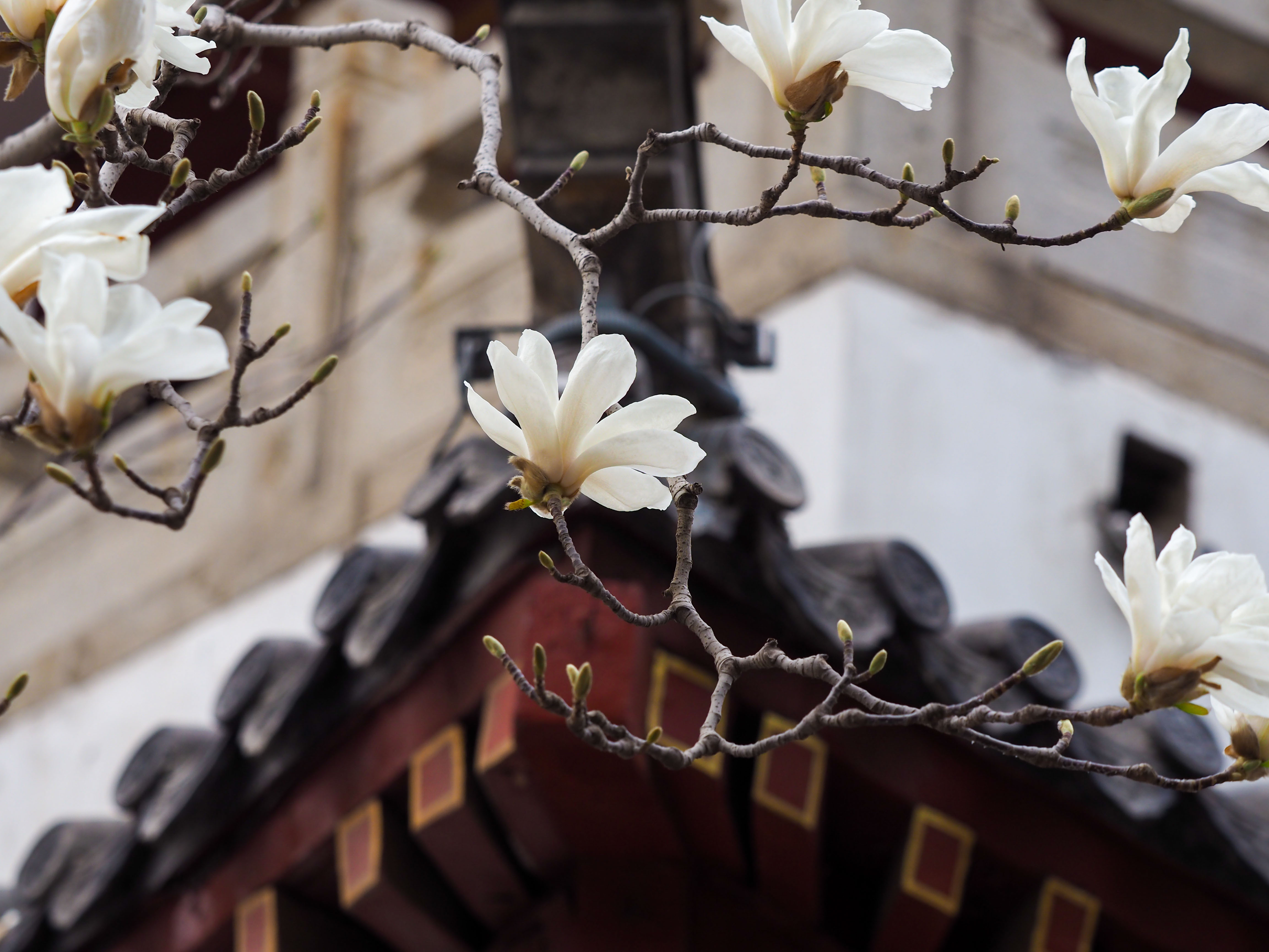 齐鲁晚报·齐鲁壹点记者 周青先 3月13日,济南趵突泉公园白雪楼前,几棵高大的白玉兰进入最佳观赏期。千万朵乳白色的花与朱甍碧瓦的白雪楼相衬,构成绝美的春天画卷。 玉兰花吸引了众多游客前来踏春打卡,成了公园内一道亮丽的风景线。