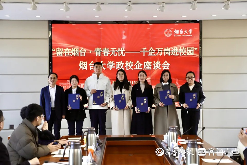 活动过程中,烟台市公共就业和人才服务中心负责人、烟台黄渤海新区人社局负责人、校领导、各学院及部门负责人分别在主校区和八角湾校区与东方化学、道恩集团、中集来福士、艾创机器人等10余家企业开展座谈交流,进行企业和人才需求推介,就人才培养、学科建设、校企合作等方面深入探讨并向重点企业代表颁发职业指导(就业创业)导师聘书。