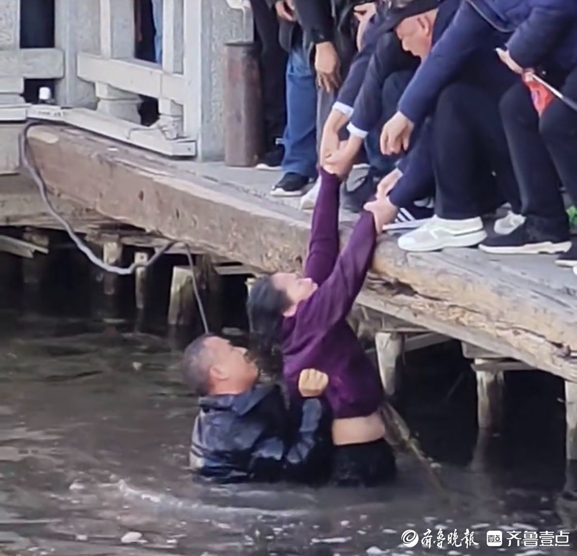 3月18日下午,在济南大明湖景区历下亭附近,一位老人不慎掉入湖中,四川游客赵佳见状纵身跃入湖中施救,在岸上人员的帮助下合力将老人救起。