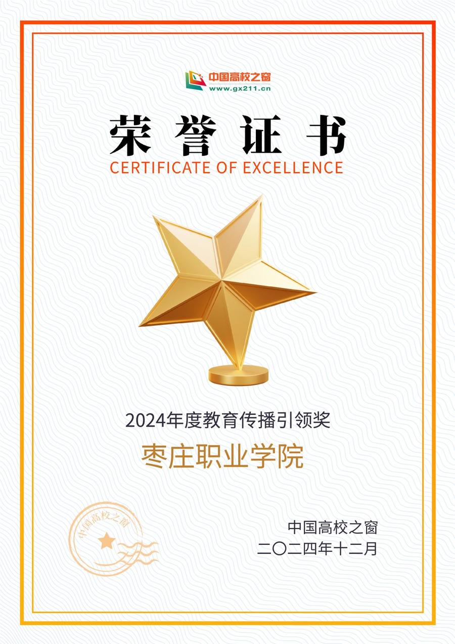 枣庄职业学院荣获“2024年度教育传播引领奖”