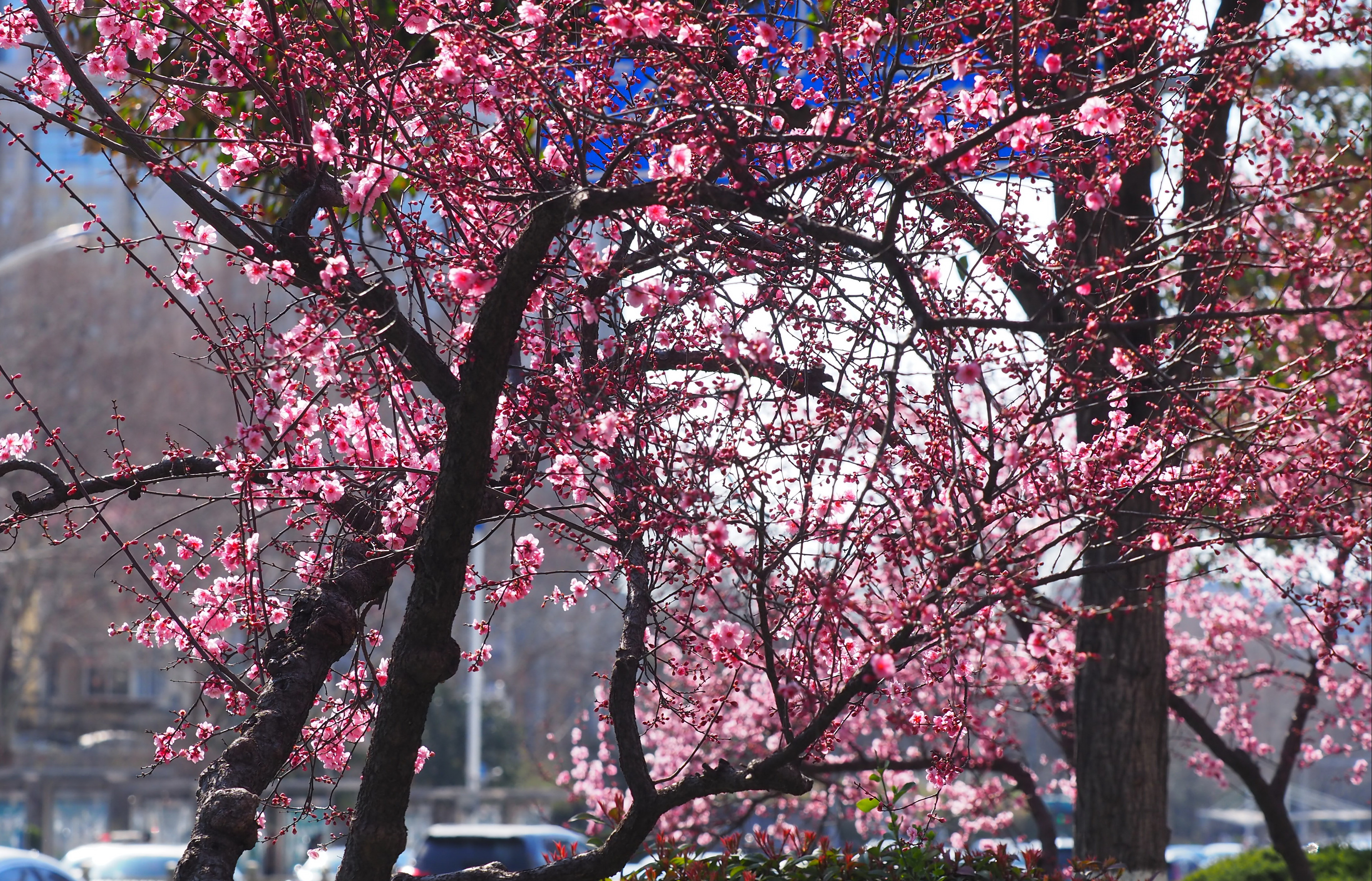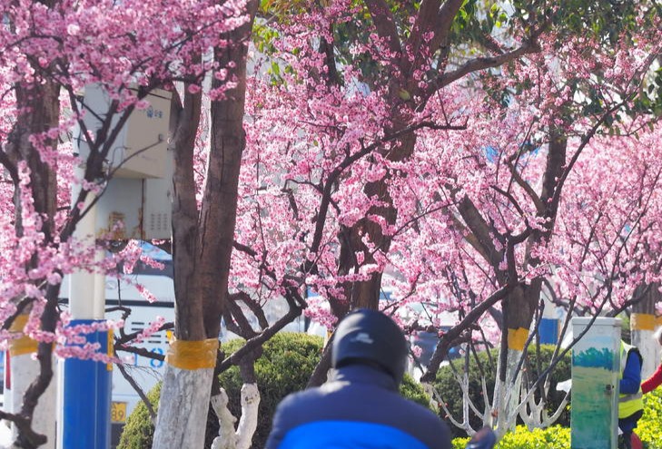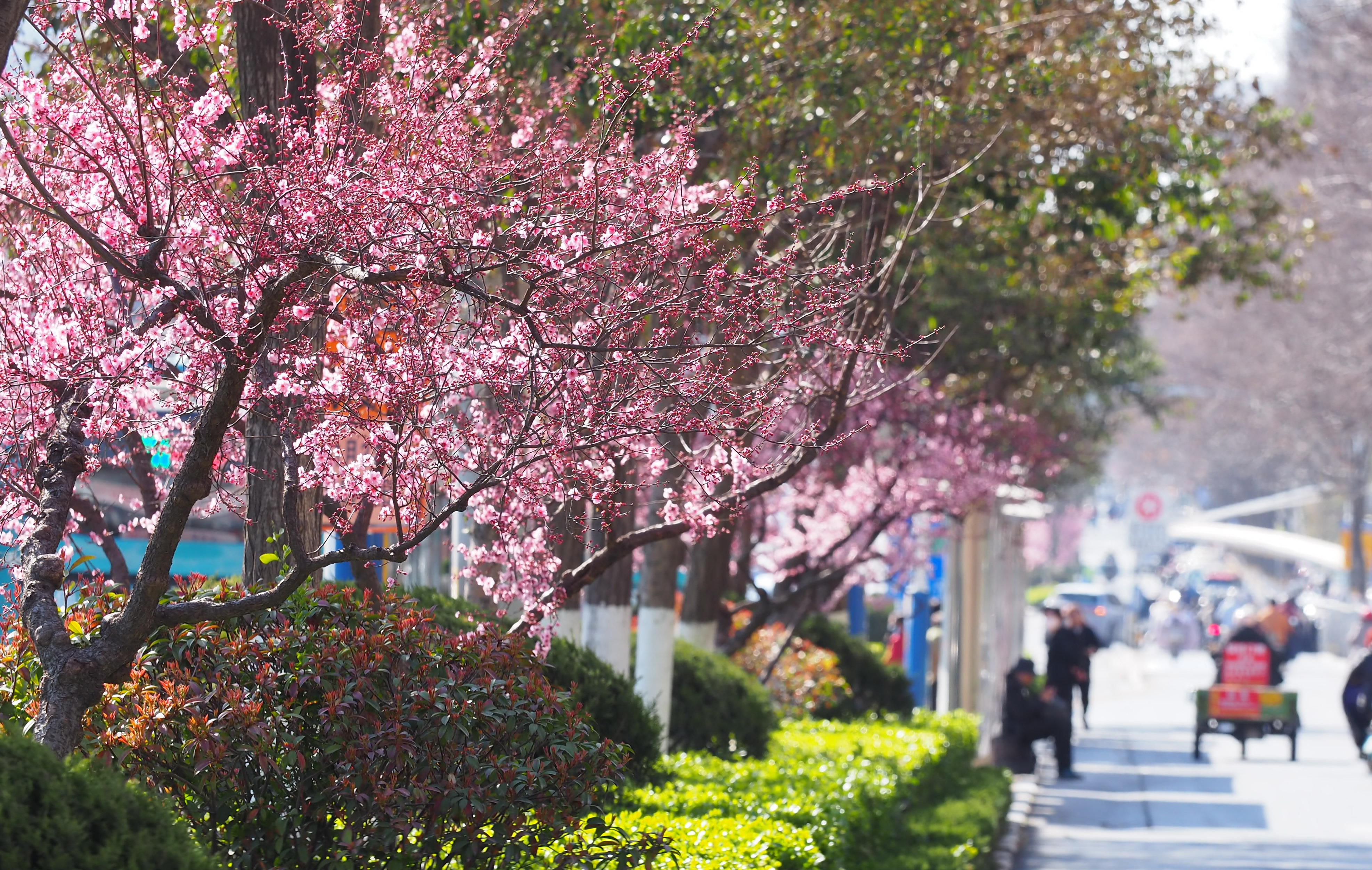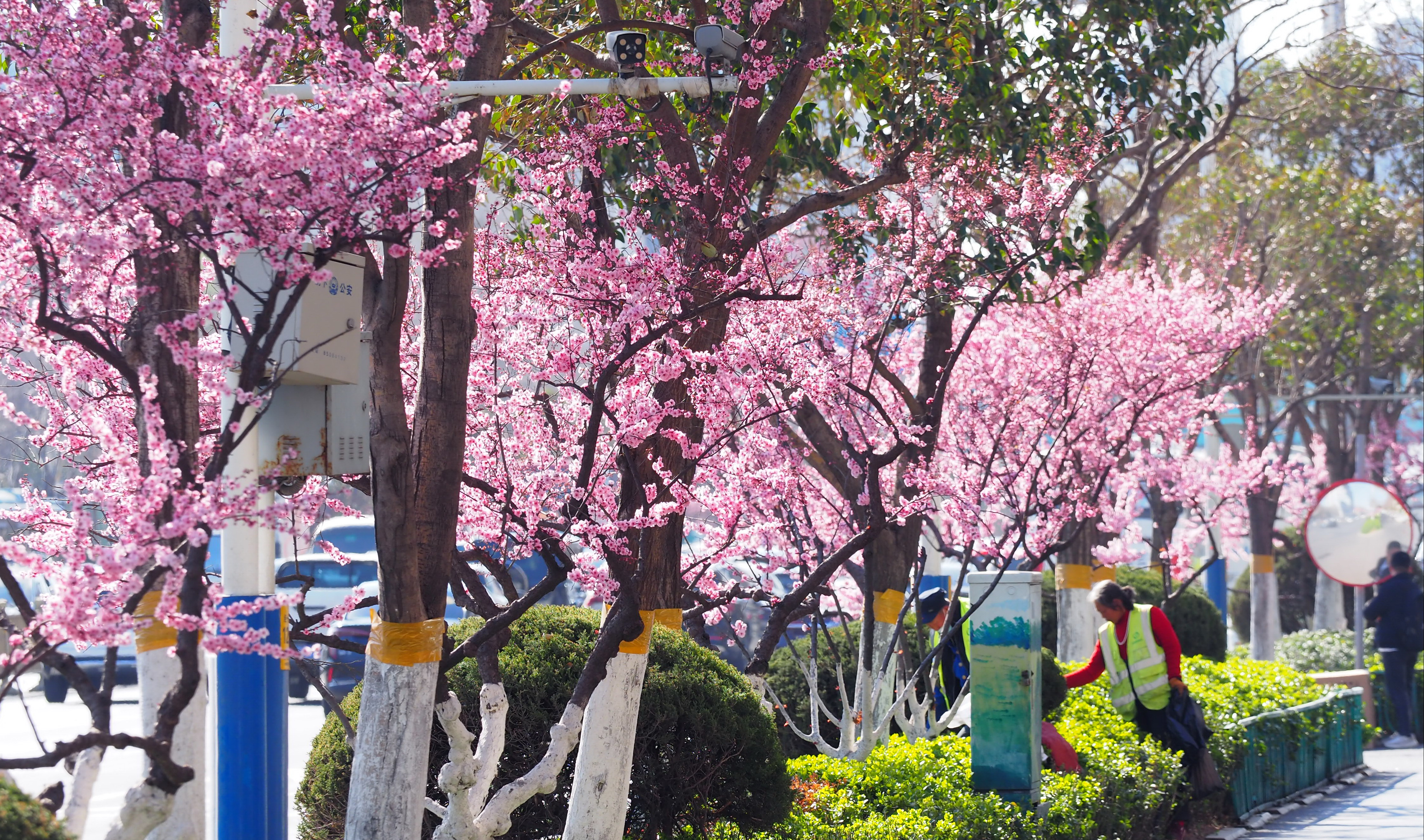 齐鲁晚报·齐鲁壹点记者 周青先 3月20日,济南暖风轻拂,经十路千佛山以西几公里长的绿化带里,上百棵美人梅一起开放,构成了美丽的“粉红长廊” 。 这些绿化带里的美人梅已栽种十多年,枝叶茂盛植株逐年扩大,每年春季形成一道美丽风景线。
