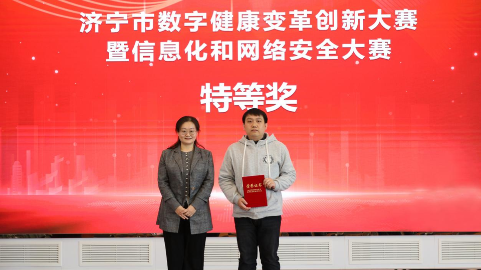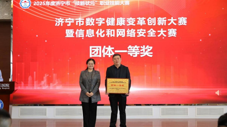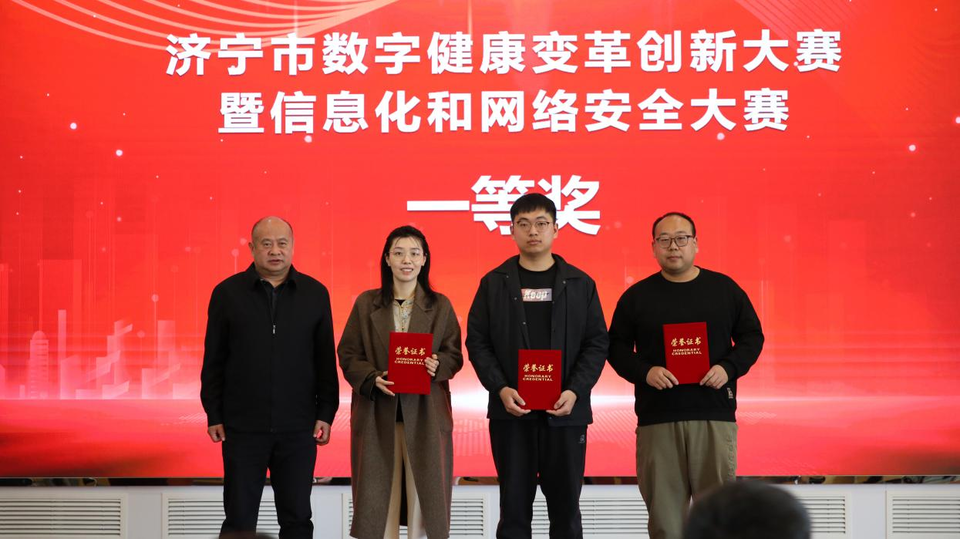 3月18日,由济宁市卫生健康委、市委网信办、市人力资源和社会保障局、市总工会联合主办,山东省戴庄医院和市爱卫中心承办的济宁市“技能状元”职业技能大赛—2025年度数字健康变革创新大赛暨信息化和网络安全大赛圆满落幕。山东省戴庄医院由信息部主任郭勇带队,选派裔婷婷、焦城城、李圣玉、曹文聪四位选手参加本次大赛。经过激烈角逐,山东省戴庄医院以卓越表现荣获团体一等奖,焦城城以全场最高分荣膺个人特等奖,裔婷婷、曹文聪双获个人一等奖,创下本届赛事最佳战绩。