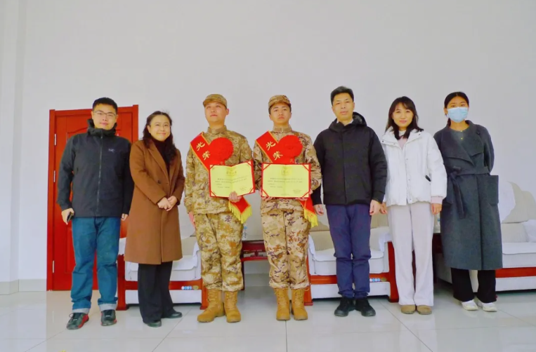 两位学院副书记为即将出发的学生戴上光荣花,送上细心叮咛。希望他们到部队后,能迅速适应部队生活,严守纪律,服从指挥;积极发挥自己的专业特长,在军队信息化、现代化建设中找到用武之地,实现知识与实践的深度融合;遇到困难别退缩,保持积极乐观的心态,展现哈工大学子坚韧不拔的精神风貌。