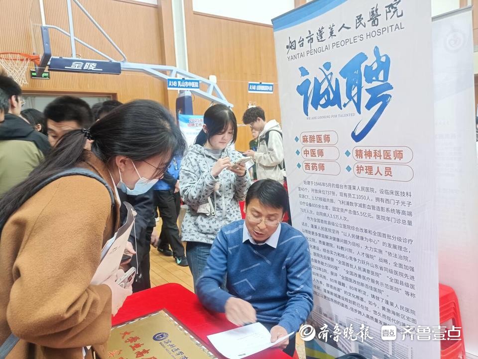 现场大学生求职热情高涨,不少企事业单位展位前都排起了长龙,等待咨询的求职者挤满了整个会场。在众多招聘单位中,公立医疗机构,特别是二甲、三甲医院备受青睐。不过多数公立医院对毕业生的学历有较高要求。如烟台市口腔医院的岗位招聘对象的学历条件为硕士或博士,烟台山医院招收内科、骨科、外科医生的要求为硕士(含)以上,医疗、护理、科研等岗位要求为博士;烟台市奇山医院招聘要求为硕士以上;烟台市莱阳中心医院多个专业的岗位要求也为硕士以上。