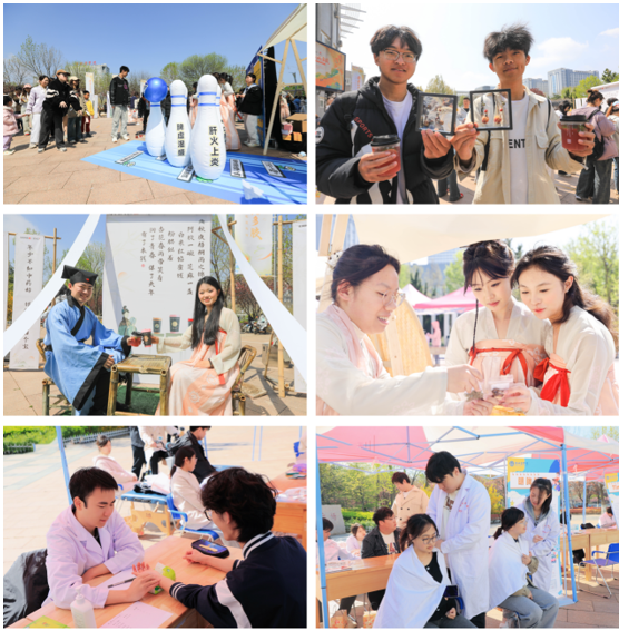 本次活动设置启动仪式、名医宣讲中医药文化、中医药创新传承发展交流及互动、中医药文化集市等环节,吸引近千名学生踊跃参加。启动仪式现场,多方代表共同探索校企协同育人、中医药文产教深度融合的山东方案。在中医药创新传承发展交流活动中,知名中医专家、研发专家与在校师生就深化传承、市场创新、青年需求、教育革新等议题展开思维碰撞,探寻破题之道。活动同步举办了“中医药文化主题市集”,吸引大批学生驻足体验。在“望闻问切”互动区,中医专家免费义诊,手把手教授脉诊技巧;“锦上花”展台前,提供中式养生阿胶奶茶现场品鉴;更有百草盲盒、体质辨识、趣味保龄球、中药香囊DIY等创意互动,将传统智慧转化为青春化表达。