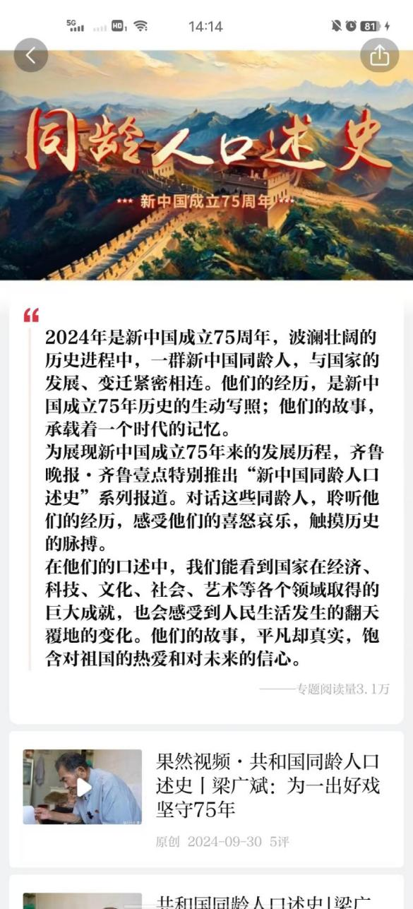 2.新中国成立75周年特别策划——共和国同龄人口述史。