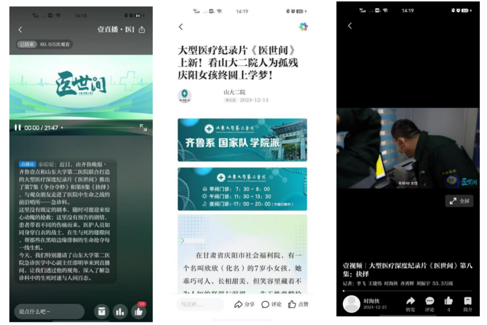 围绕宣传贯彻党的二十届三中全会精神、党中央重大战略决策和重要节点,推出《南四湖》《共和国同龄人口述史》《医世间》《高质量发展山东行》等报道,彰显国家情怀和时代进步。
