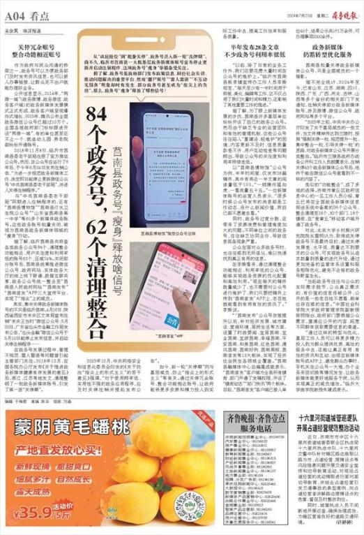 3.临沂清理整合政务号、四个苹果卖1600万元报道