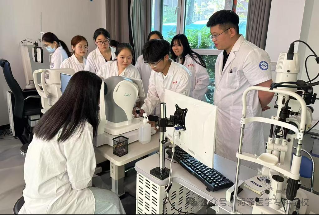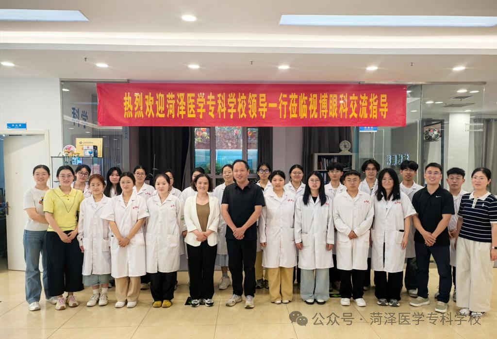 5月12日,菏泽医学专科学校医学技术系眼视光技术专业组织专业骨干教师及学生代表走进菏泽市视博眼科,开展产教融合专项交流活动。系主任戴馨和视博眼科总经理李昌参加此次活动。